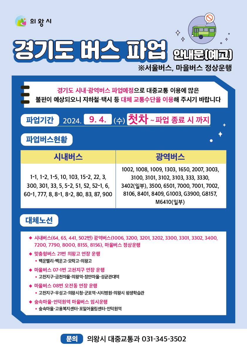 [의왕시 파업예정 노선 및 무료셔틀버스 운행 안내]