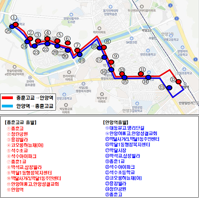 안양시, 석수동지역(충훈고-안양역) 무료셔틀버스 운행