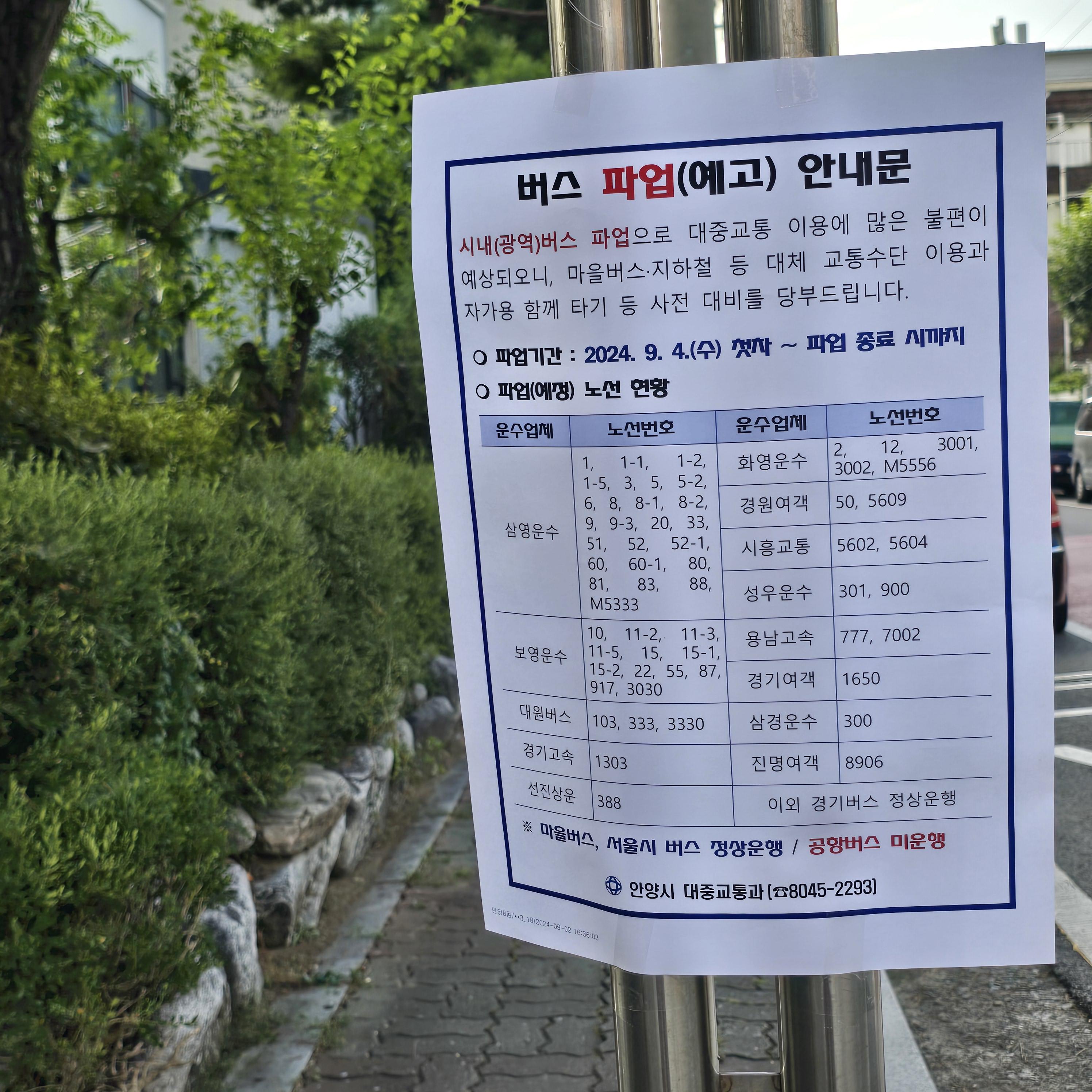 2024. 9. 4.(수) 첫차 ~ 파업 종료 시 까지