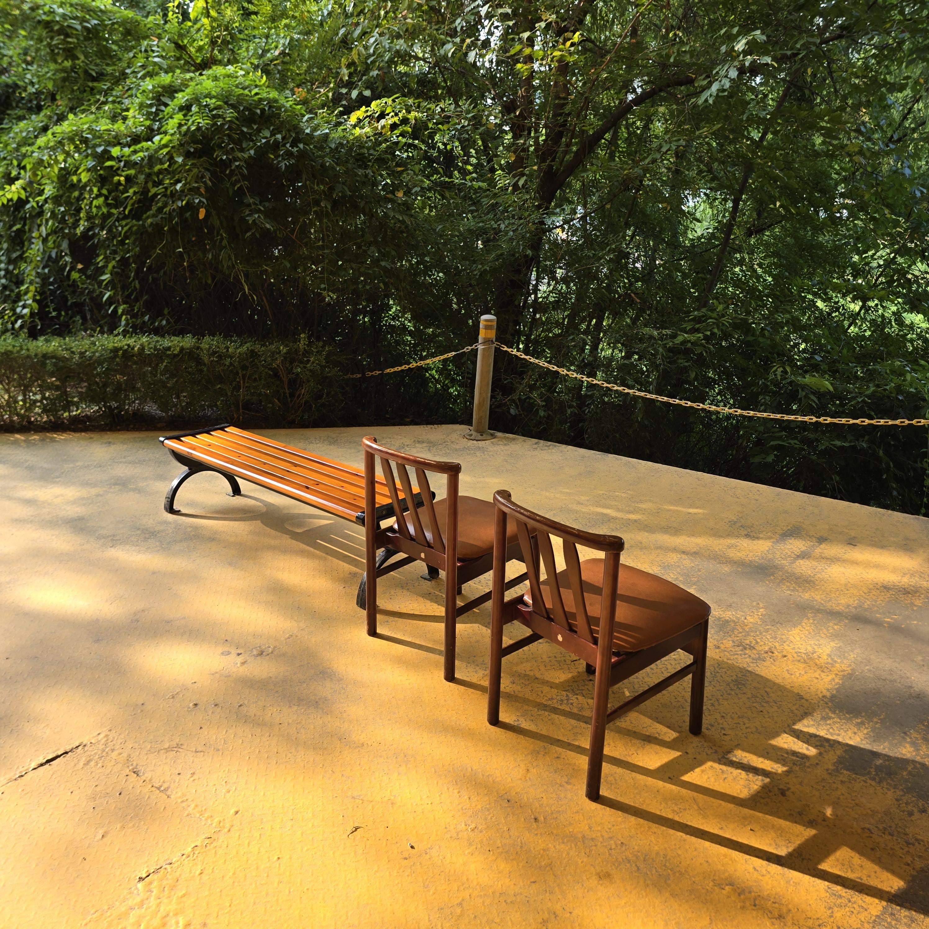 2024.09.08/ #도시기록 #아지트 #안양 #apap #새동네 #오픈스쿨 #학운공원/ 안양 학운공원 C구역. 오픈스쿨 주변에 나그네들니 잠시 쉬었다 갈수 있는 새로운 벤치와 의자들이 설치됐다. 학운공원 동쪽 끝자락 내비산교 옆에 있는 이곳은 APAP의 평촌 새동네(NEW COMMUNITY)라 불리우며 제3회 공공예술프로젝트(APAP2010)의 주무대가 진행됐던 곳으로 오픈 스쿨''오픈 파빌리온', '오픈 하우스', '오픈 코트' 등 4개의 조형물이 설치되었으나 관리 부재에 따른 민원 등으로 오픈하우스 등 일부 작품이 철거되고 오픈스쿨은 장기간 문이 딛혀있는 등 공간 활용에 아쉬움을 보고 있다.
