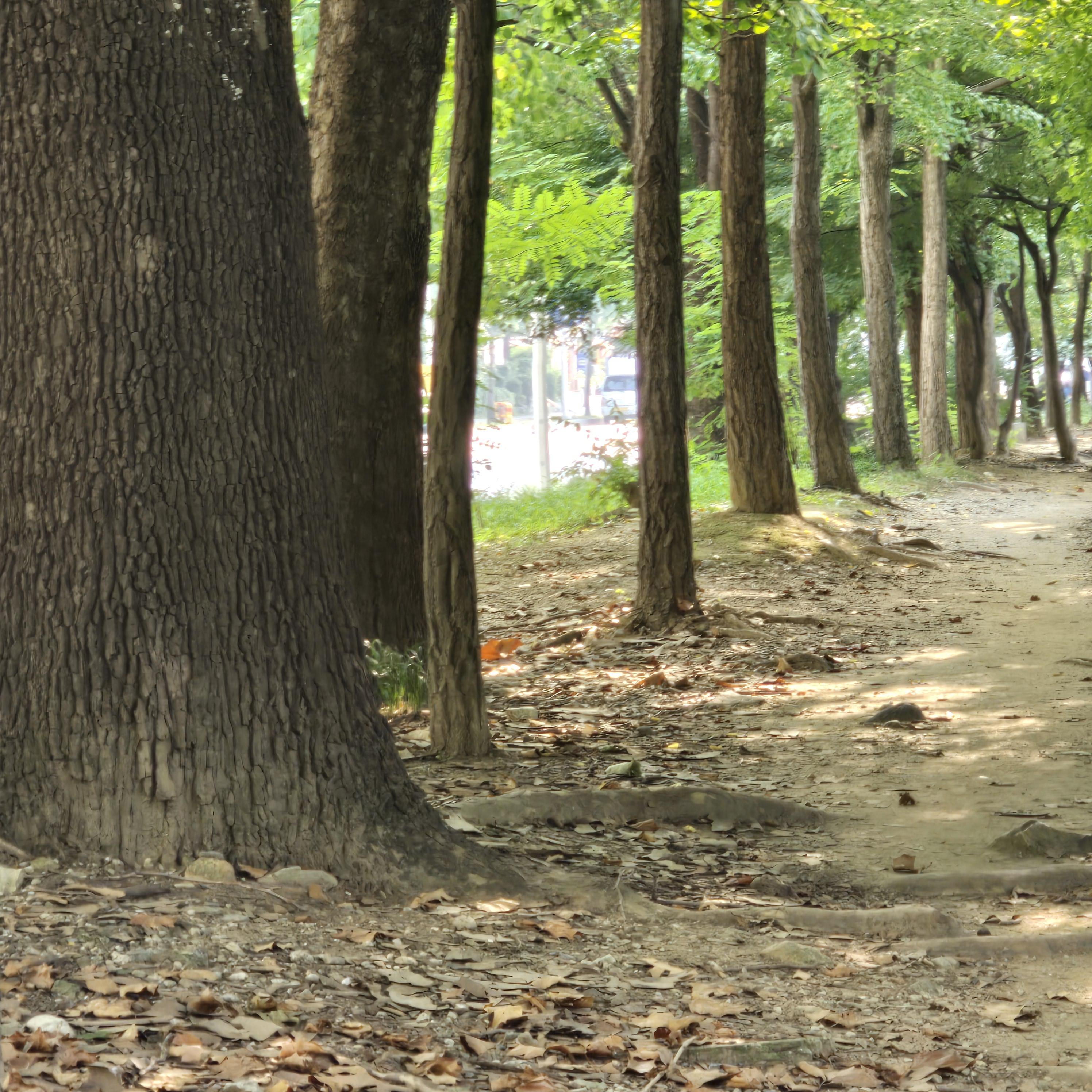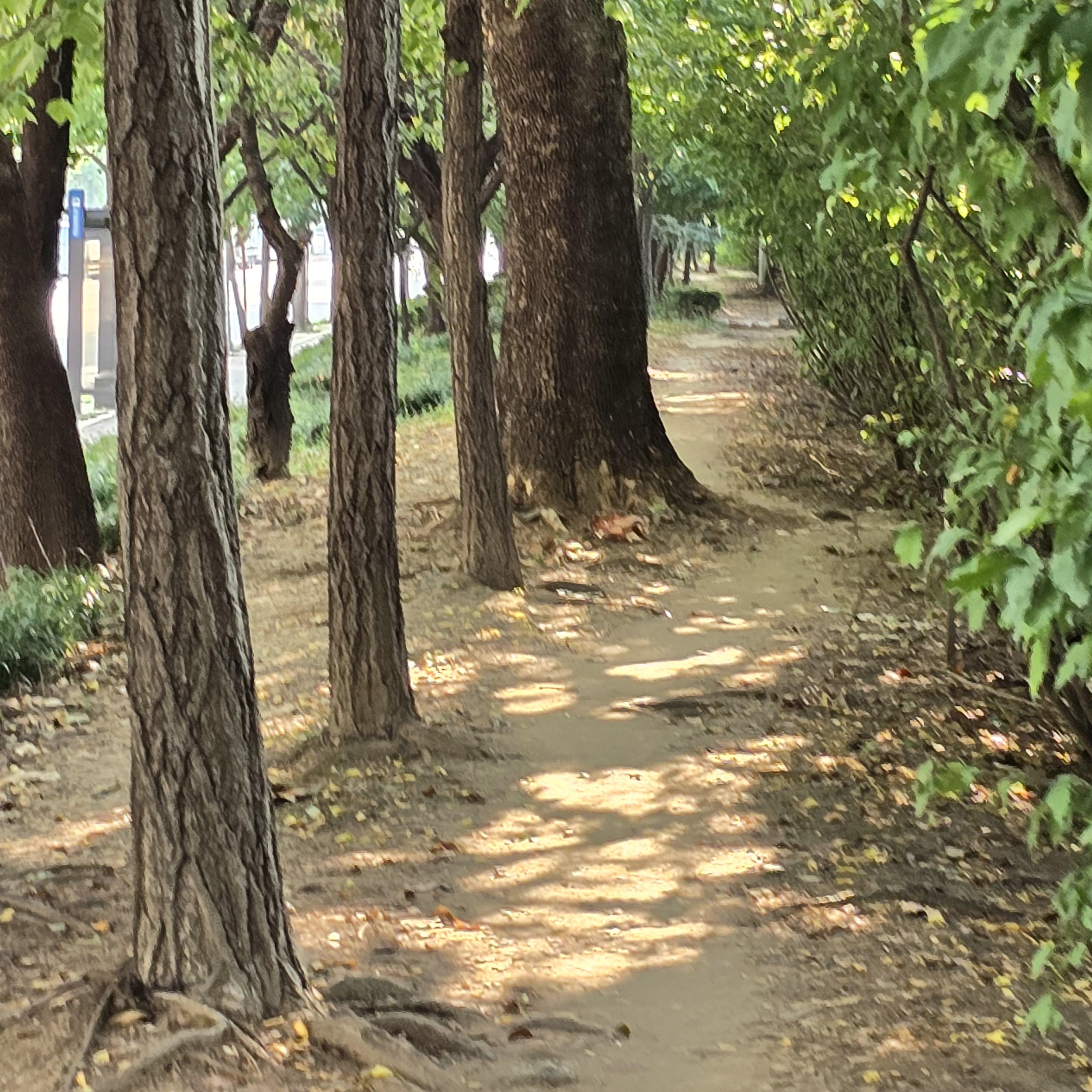2024.08.08/ #도시기록 #안양 #학의천 #숲길 #그늘길 #제방길 #걷고싶은길/ 안양 학의천 남쪽 제방에는 동네 주민들과 아는 사람만이 걷는 길이 숨어있다. 코스는 비산인도교옆 소공원부터 시작해 대한교까지 이어지는 나무숲길로 그야말로 걷고싶은 길이다. 먼저 비산인도교부터 내비산교까지는 학운공원과 학의천 중간에 놓여진 산책길을 걷게된다.