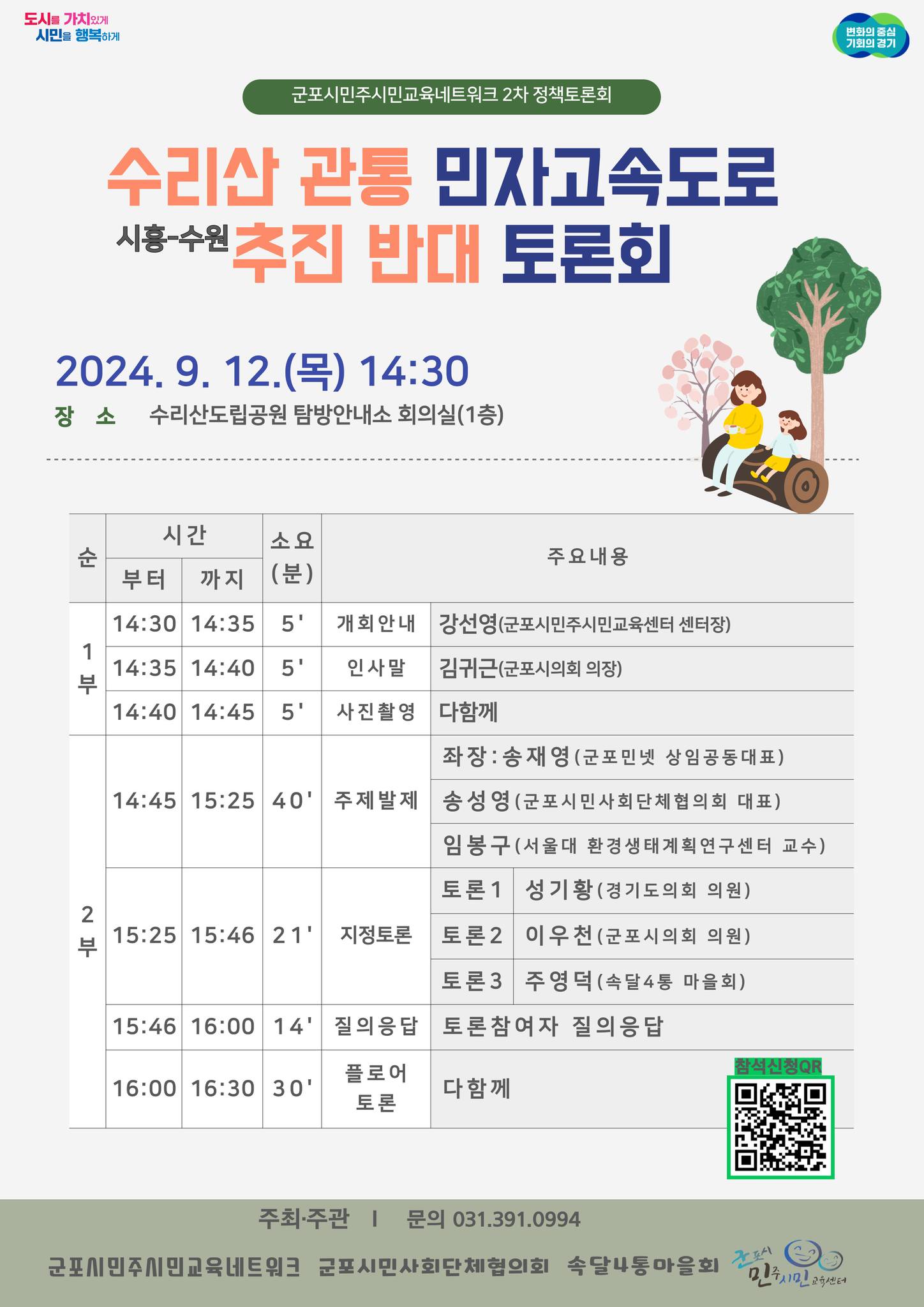 [20240911]수리산 관통 시흥-수원 고속도로 반대 토론회