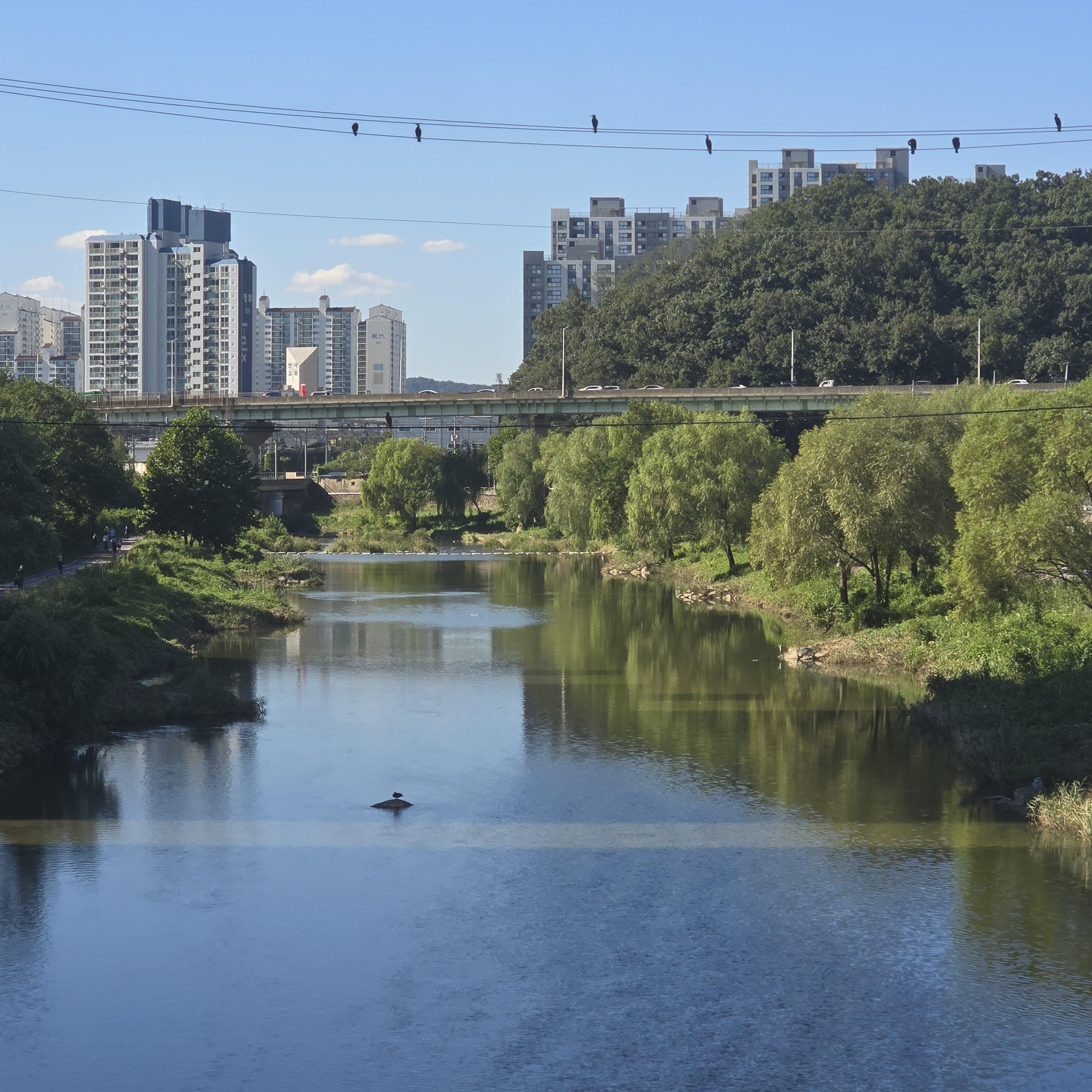 2024.09.23/ #도시기록 #안양천 #민물가마우지/ 하천 생태계를 파괴하는 물고기 포식자 민물가마우지 10여 마리를 한꺼번에 보다. 양명고 정문앞. 하천위 전선줄과 하천 돌위에 앉은 시커먼 녀석들.