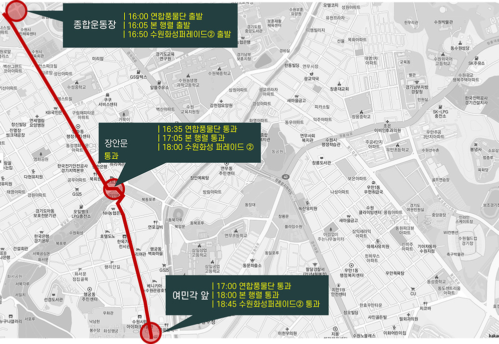 서울 창덕궁부터 수원 화성을 거쳐 화성 융릉까지 총 59.2㎞ 중 43.5㎞ 구간에서 1795년(을묘년) 정조대왕 원행(園幸)을 재현하는 행사다. 원행은 조선 시대 왕이 부모님 산소에 행차하는 일을 말한다.