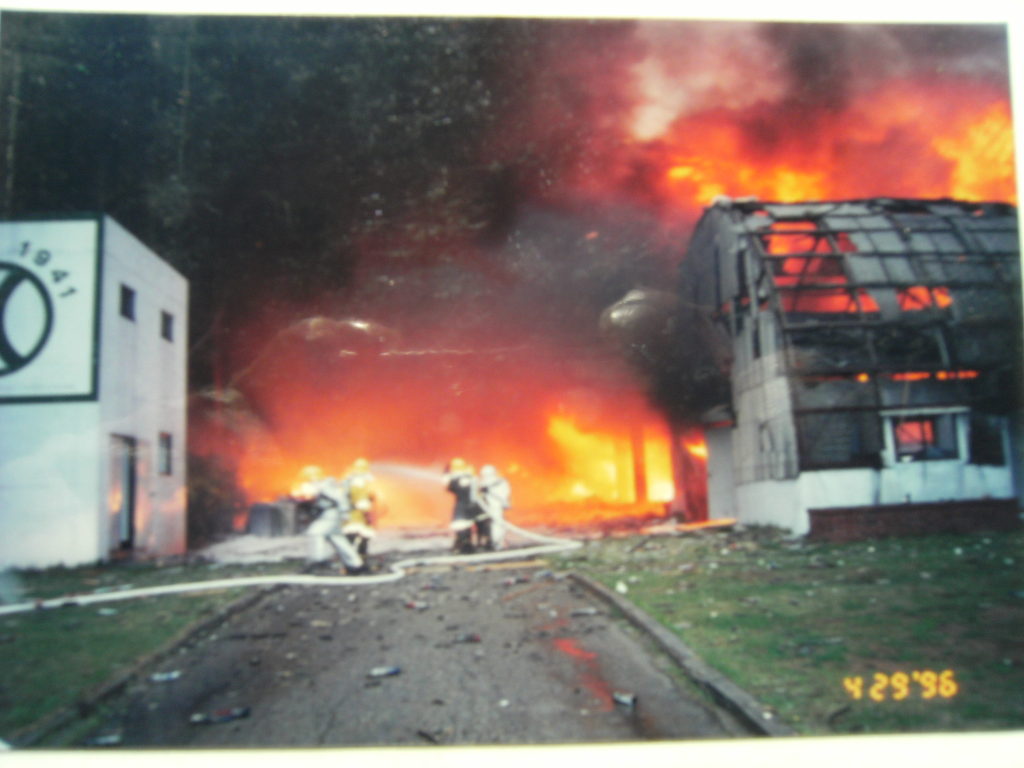 2024.10.03/ #기록 #기억 #화재 #유유산업/ 1985년 4월 29일 안양 석수동에 있는 유유산업(현 안양박물관)에서 대형화재가 발생했다. 사진에 보이는 발화 장소는 공장내 뒷편 창고(현 특별기획전시관)로 사진은 당시 화재 현장에 출동했던 안양소방서 홍보담당김종철 소방관이 촬영했다.