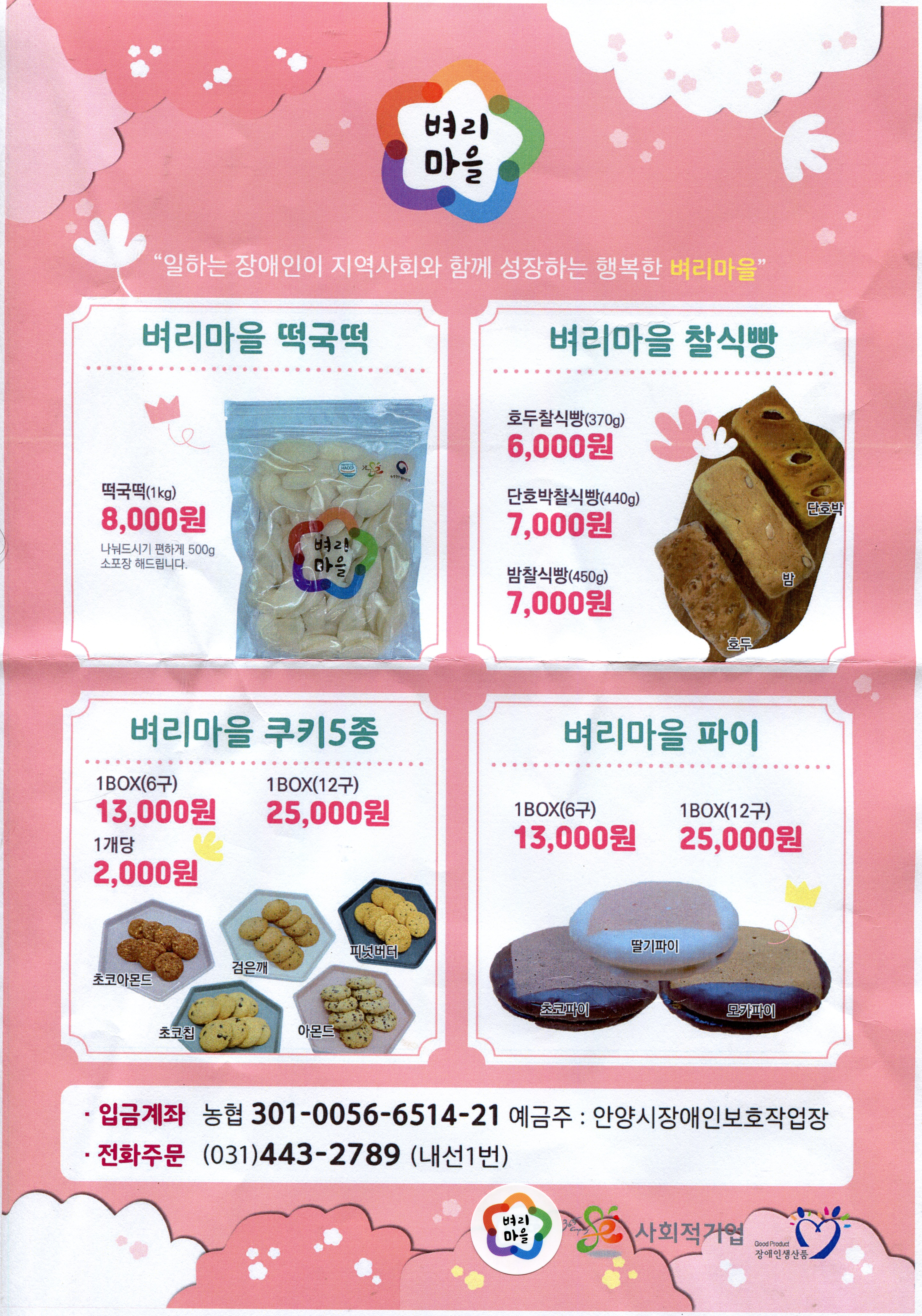 후원계좌 301-0056-6536-91 농협(예금주 안양시장애인보호작업장)