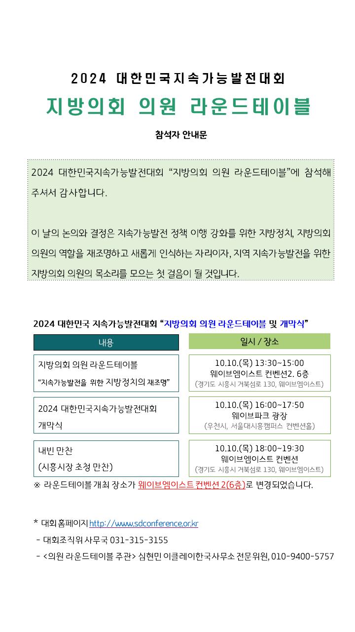 자세한 사항은 행사 홈페이지( 대한민국지속가능발전대회 (sdconference.or.kr)