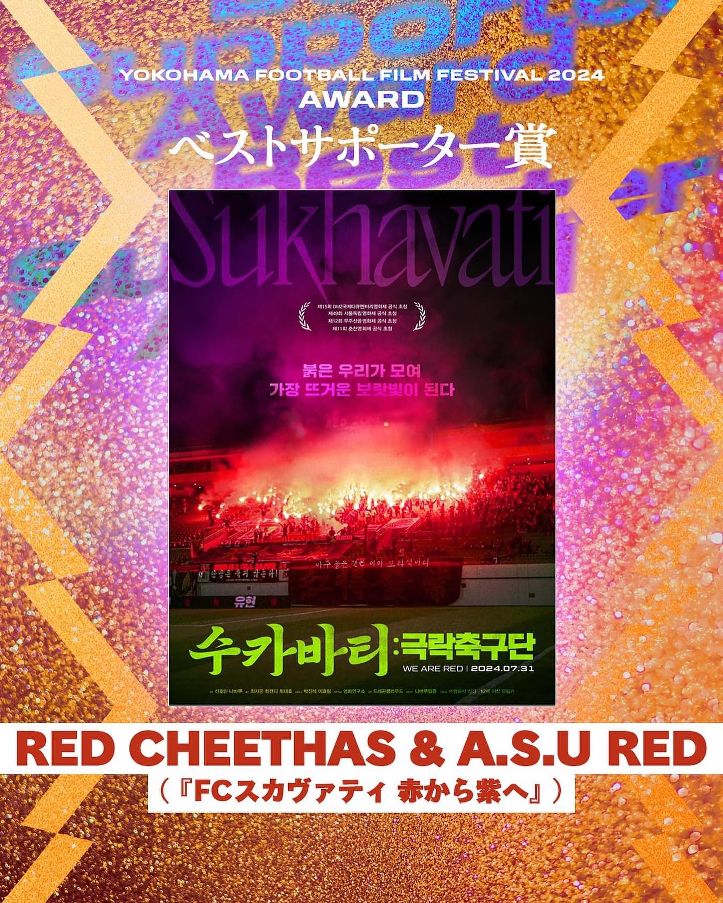 프로축구 FC안양의 공식 서포터즈 ‘A.S.U. RED’의 역사와 여정을 다룬 나바루, 선호빈 감독이 제작한 다큐멘터리 영화 <수카바티 극락축구단>이 올해 열리는 요코하마축구영화제에서 대상에 해당하는 ‘그랑프리’를 수상했다.