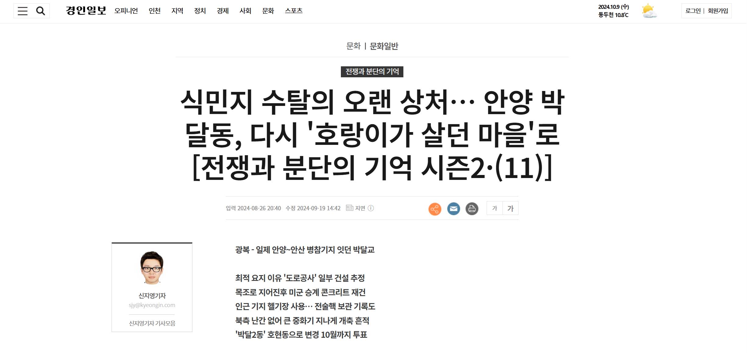 [20241009]경인일보 식민지 수탈의 오랜 상처… 안양 박달동