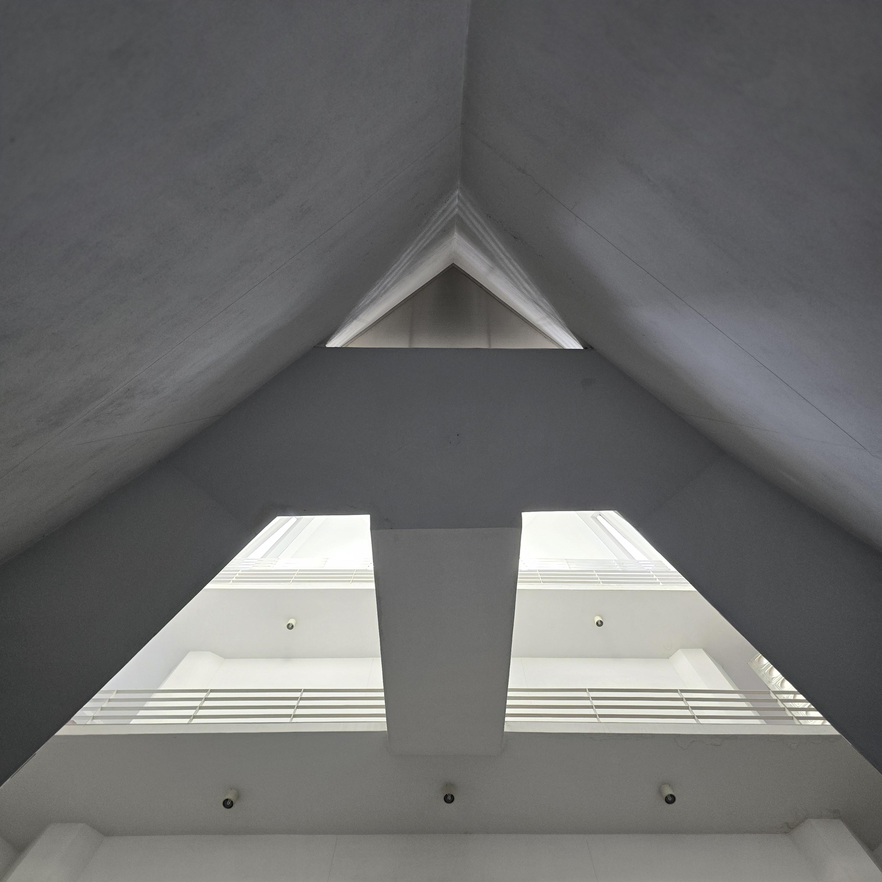 이러한 구조 해결로 내부에서는 마름모형에 가까운 공간이 형성되어 음향 처리가 더 수월해지는 효과를 얻었으며, 외부에서는 부드러운 지붕과 함께 중앙부분의 오목한 부분으로 광장 쪽에 더 많은 빛이 들어오는 효과를 얻었다. 또 이 오목한 부분은 지하 선큰 가든과 연계되어 외기에 더 많이 접할 수 있게 하였으며, 지상에서는 이곳에서 소성당의 주출입 및 대성당의 부출입이 이루어지도록 했다.