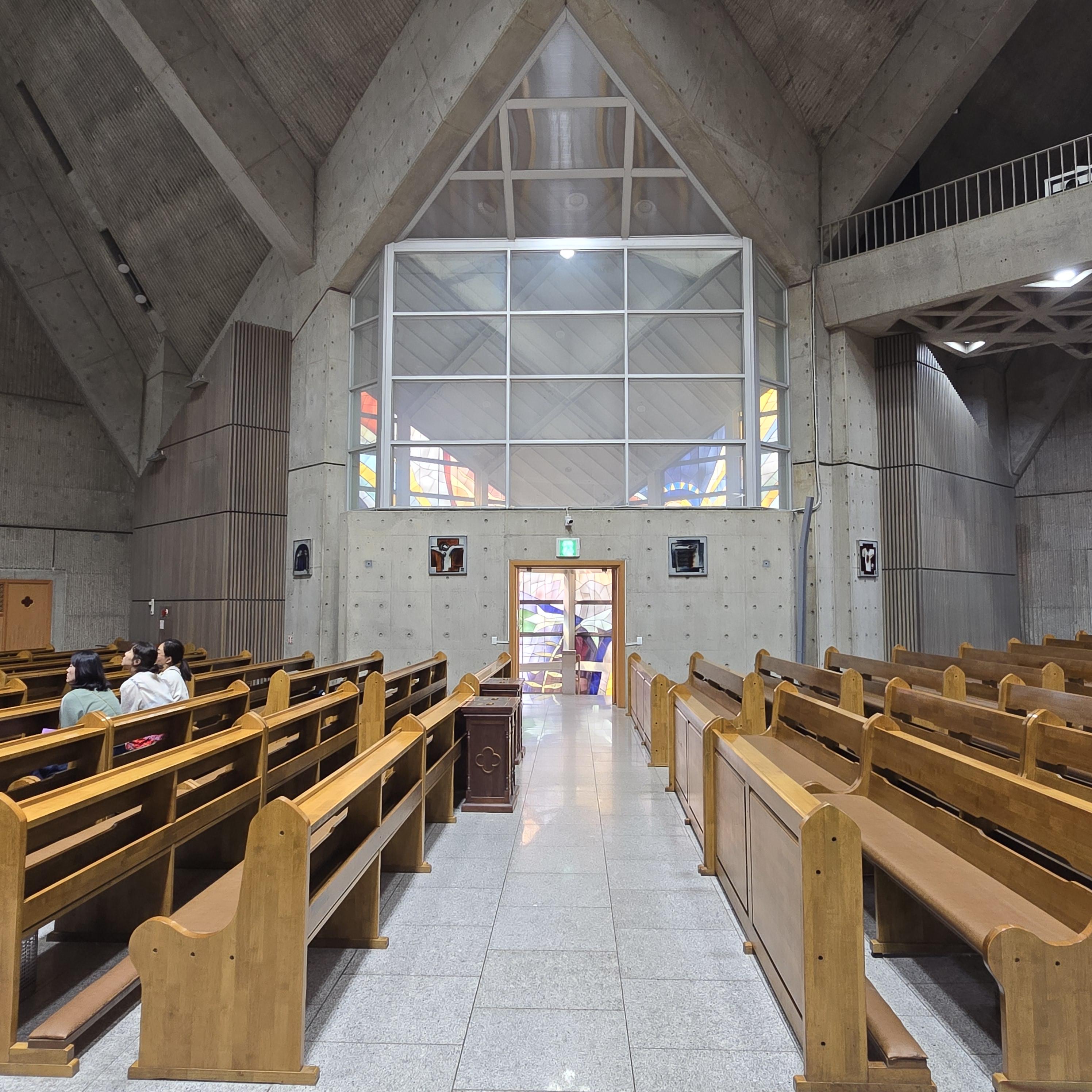 최종단계에서 2500석으로 줄어들긴 하였지만 36mx54m 규모의 대규모 신자석을 무주공간으로 처리하기 위해 특수한 구조형식을 고려했다. 무주공간을 해결하기 위한 다양한 해법이 있지만, 일반적인 구조개념으로는 종교건물로서의 공간을 표현하기 어렵기 때문이다. 종교우선 건물이 갖는 특수한 형태와 내부공간, 구조 등을 고려하여 사각형의 대각선 사용을 기본으로 하였다. 사각형의 대각선을 이용하여 마름모꼴에 가까운 내부공간을 마련하였으며, 지붕은 이 대각선을 축으로 하이퍼 쉘(Hyper Shell) 쌍포물선면을 형성하며 부드러운 곡선을 만들어내고 있다.