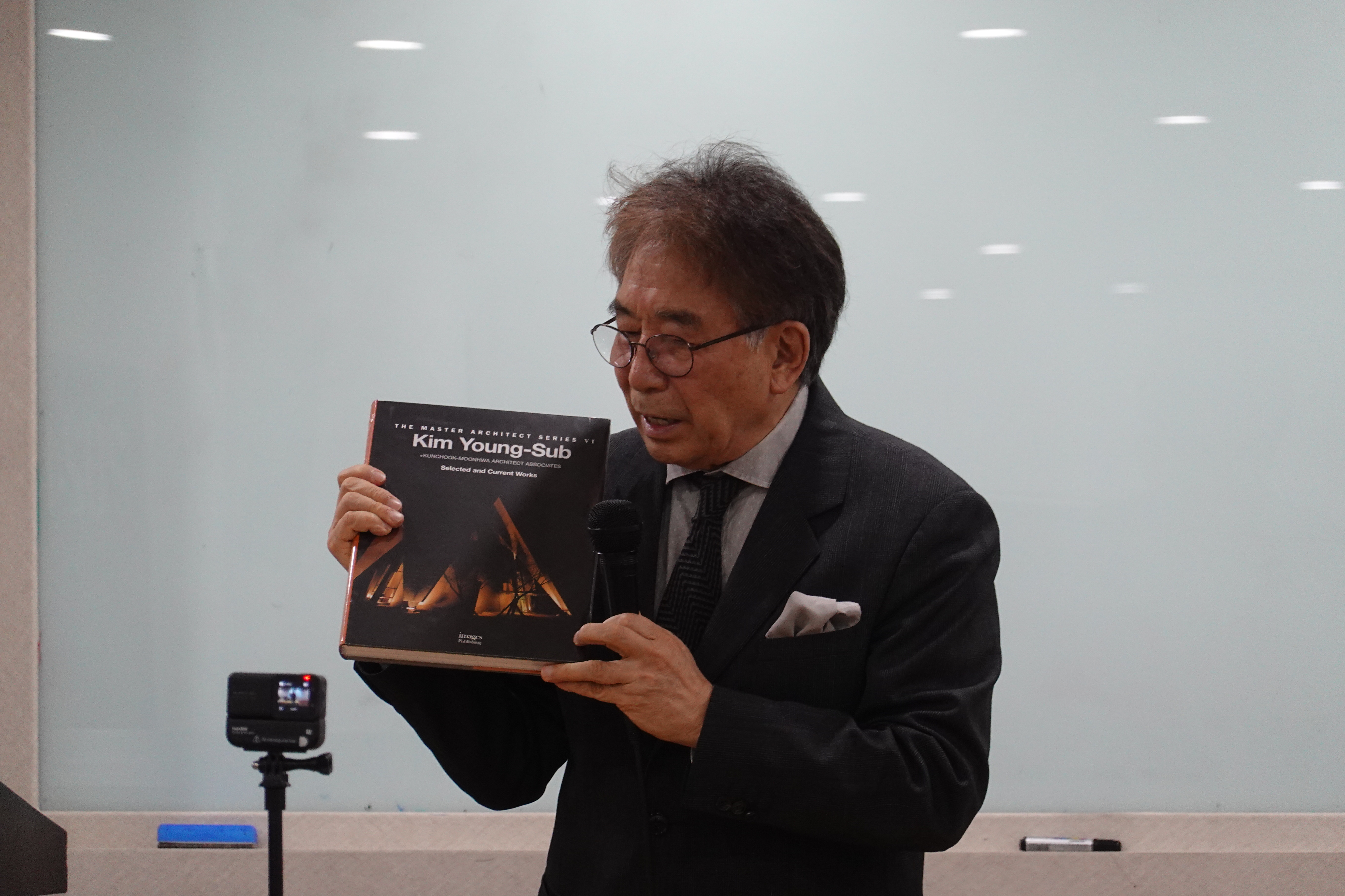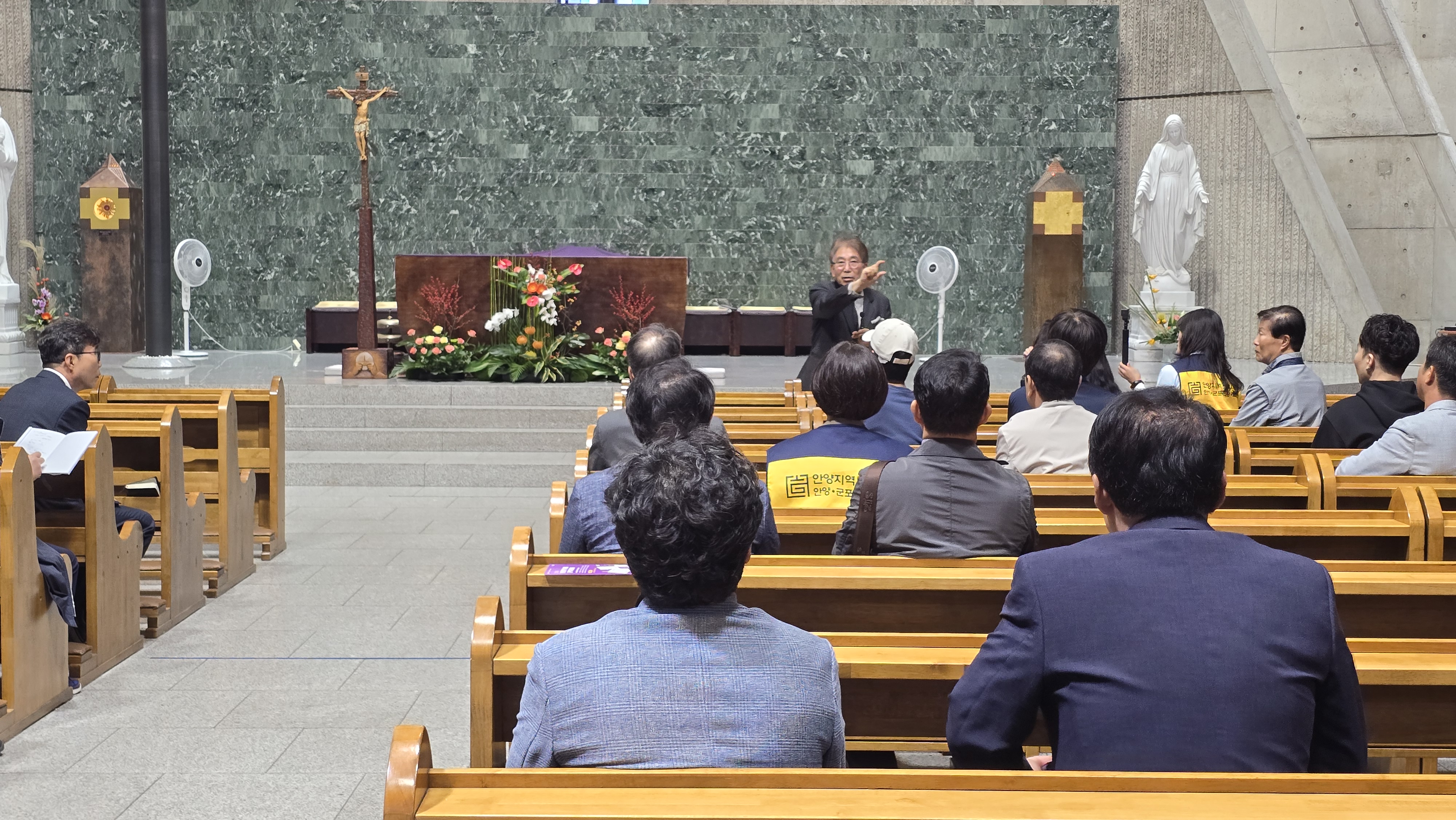 김영섭 건축사는 이날 성당을 돌아보기전 성당 지하 회의실에서 가진 참석자들과의 대화에서 건축사로 살아온 이야기와 더불어 중앙성당 건축에 쓰여진 외장재에 패널 등은 물론 창호와 성구, 가구들까지 설계와 건축과정에서 있던 일들을 들려주었다.