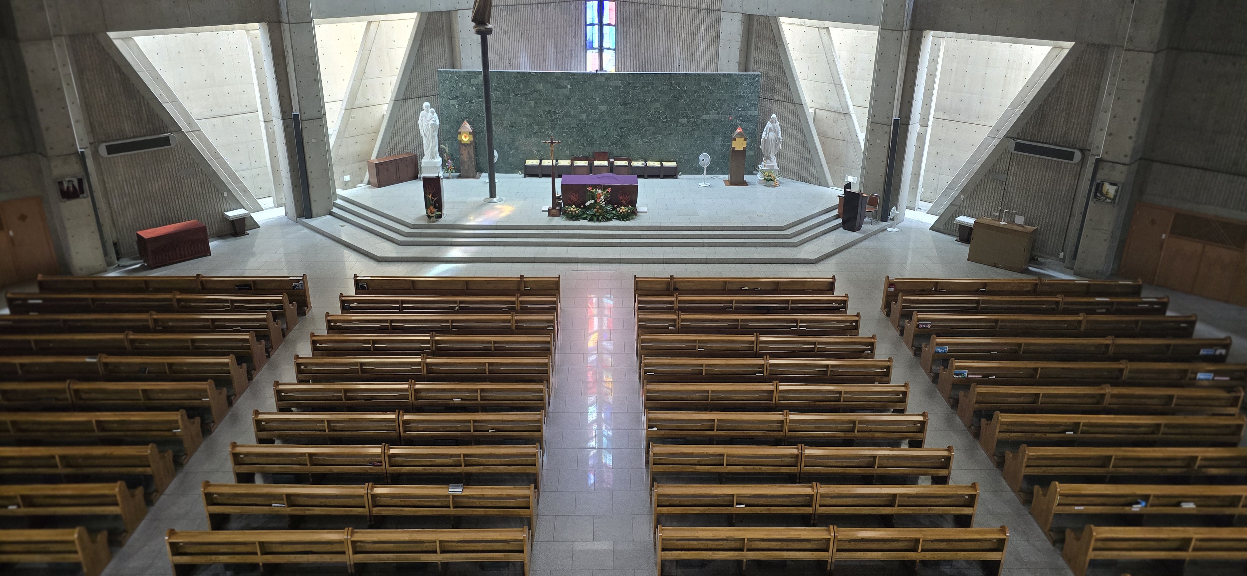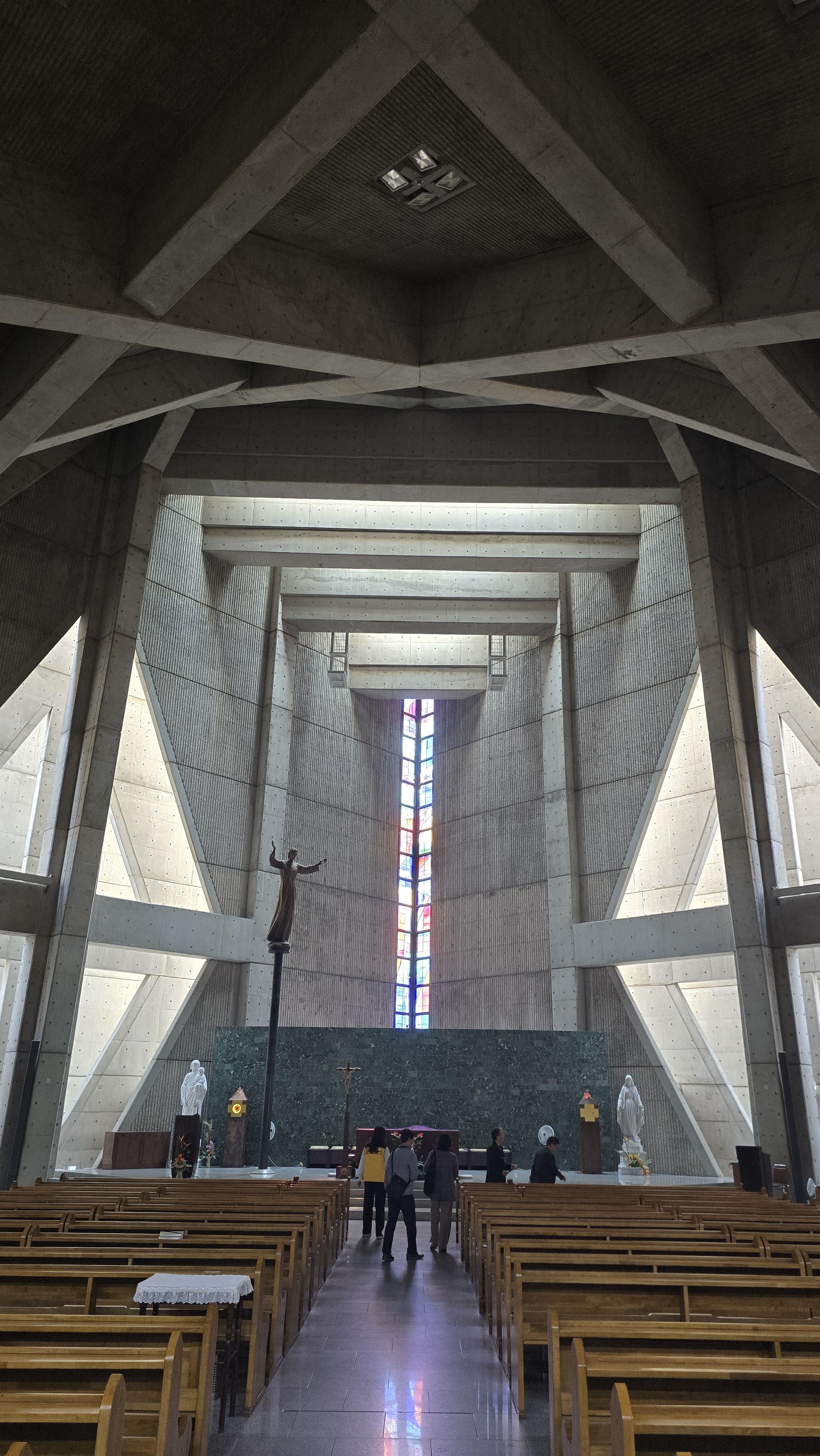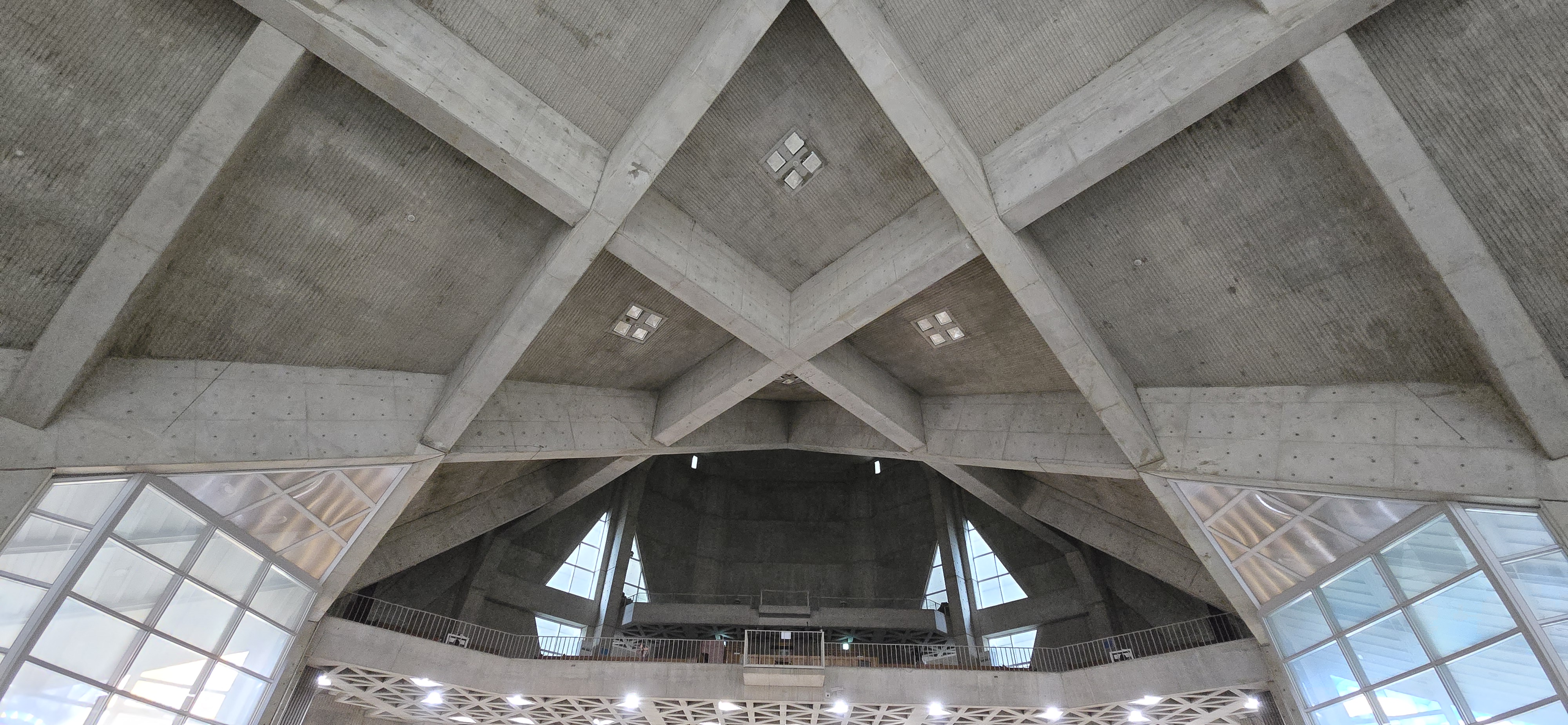 최종단계에서 2,500석으로 줄어들기는 하였지만 대규모의 신자석(약 36m×54m)을 무주공간으로 처리하기 위한 구조상의 특수해를 생각하였다. 일반적인 구조개념으로는 평범한 건물밖에 되지 않아 종교건물이 갖는 특수한 형태와 내부공간, 구조 등을 고려하여 사각형의 대각선 사용을 기본적으로 구상하게 된것이다.