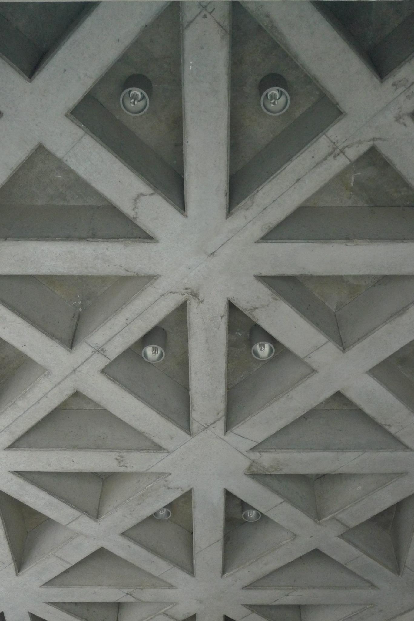 즉 정사각형 둘을 각각 4등분한 뒤 면적의 1/4을 마름모꼴로 중첩시켜 생기는 사각형 면의 √2 배 되는 4개의 대각 교차선을 기본 구조체 와 스팬으로 잡은 후, 내접 사각형(18m×36m)과 외접 사각형(36m×54m)에서 기본 구조 모듈(9m×9m)을 찾았다.