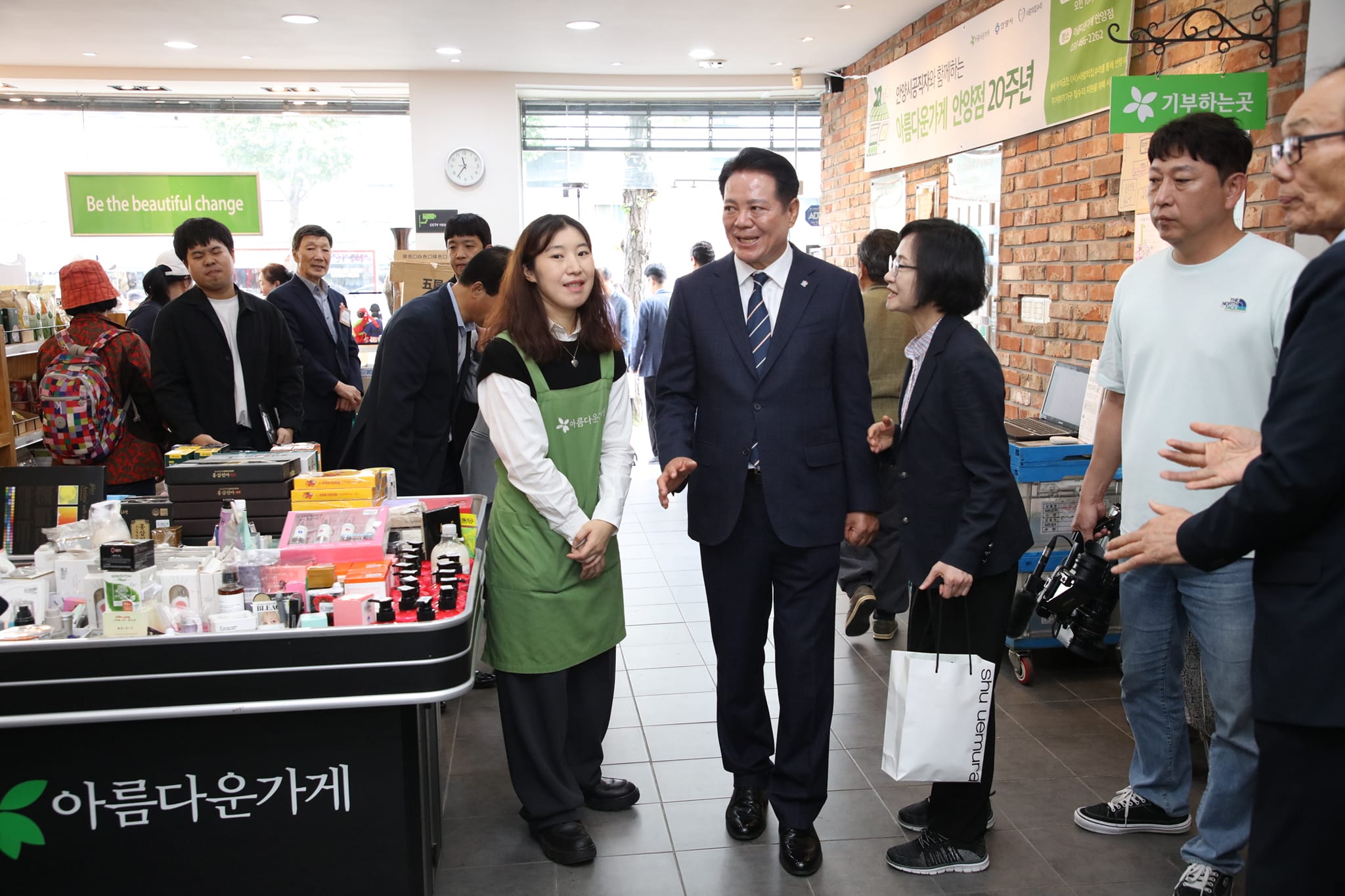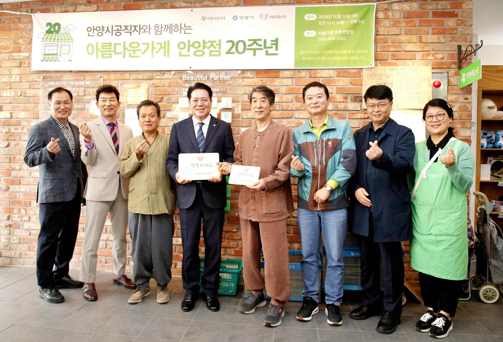 지역주민과 함께 나눔과 순환의 문화를 만들어가는 아름다운가게 안양점이 20주년을 맞이해 지난 10일 아름다운가게 박진원 이사장을 비롯한 임직원들과 활동천사들, 최대호 안양사장, (사)사랑의집수리 박은경 대표, 만안종합사회복지관 유정환 관장 등이 참석한 가운데 특별한 행사를 진행했다.