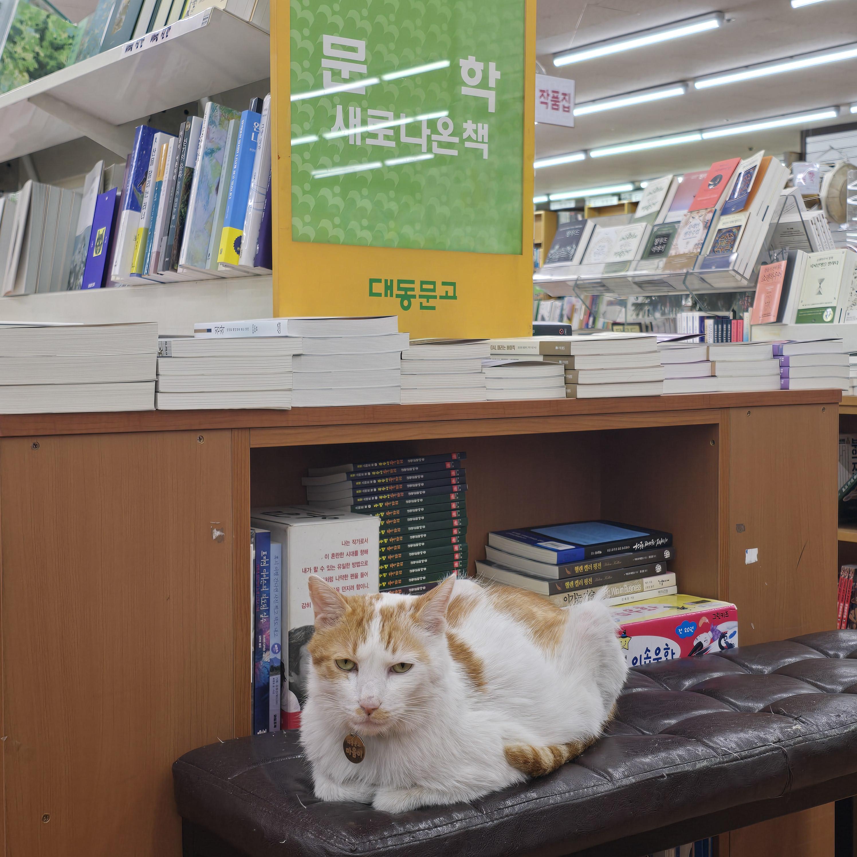 2024.10.17/ 길고양이로 살다가 안양 대동문고 마스크트가 되어 서점 직원들은 믈론 고객들의 사랑을 받으며 팬까지 있는 나옹이들 마음이와 행복이가 보고파 잠깐 들리다. 이 두 녀석들은 방송(SBS 동물농장)에도 출연한 녀석들이다.