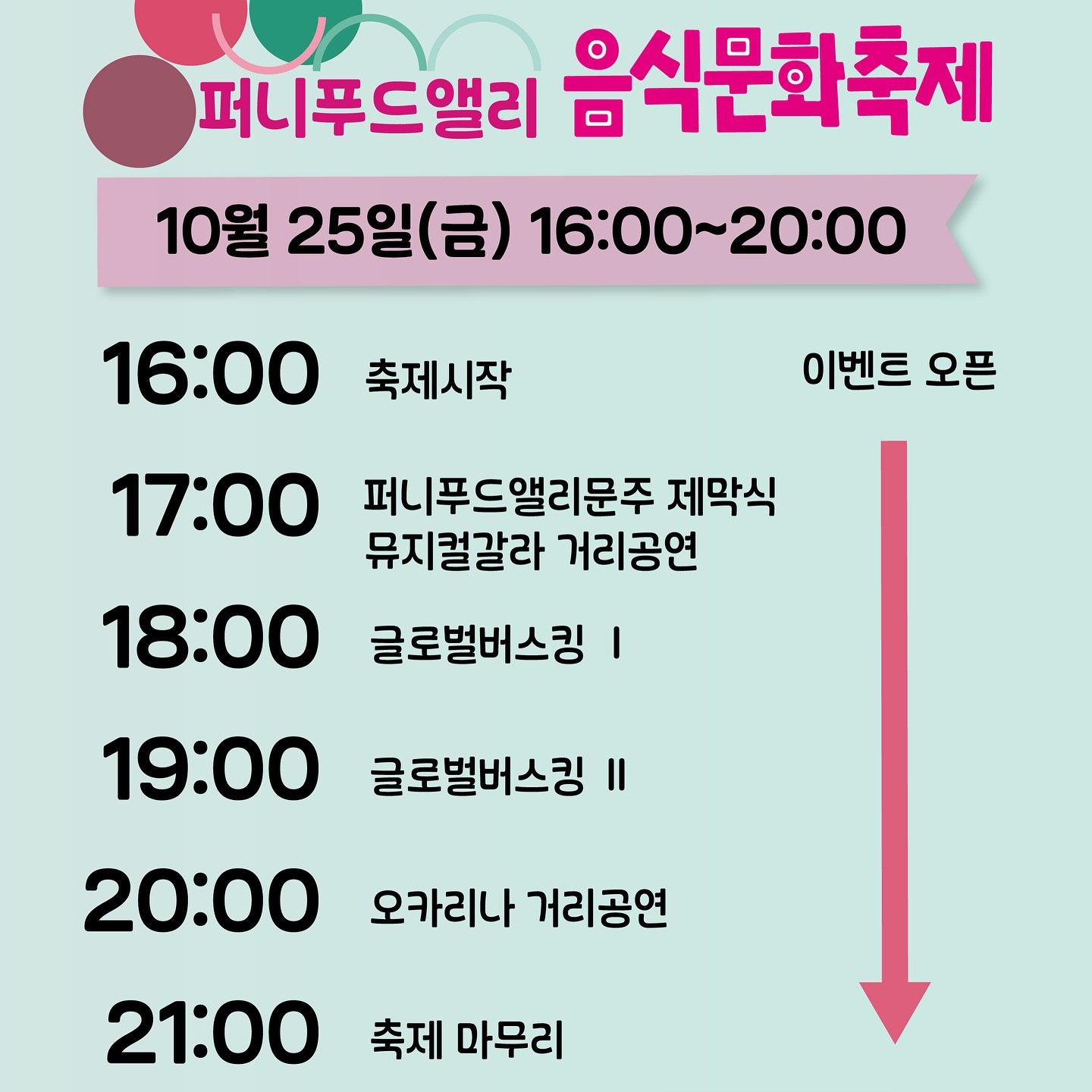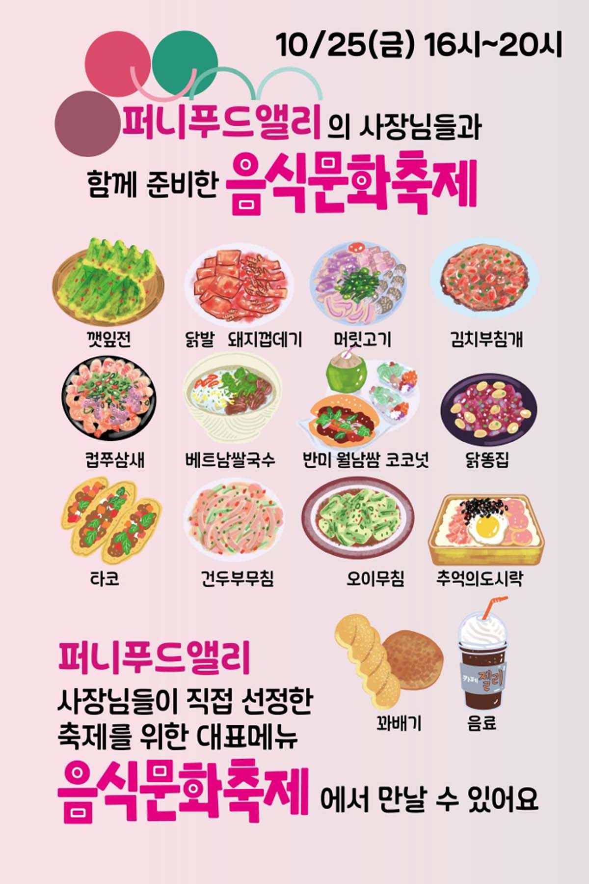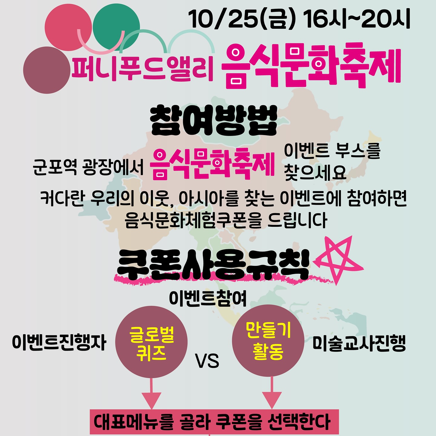 오는 금요일, 10월 25일 #군포퍼니푸드앨리 의 #음식문화축제 가 시작됩니다.