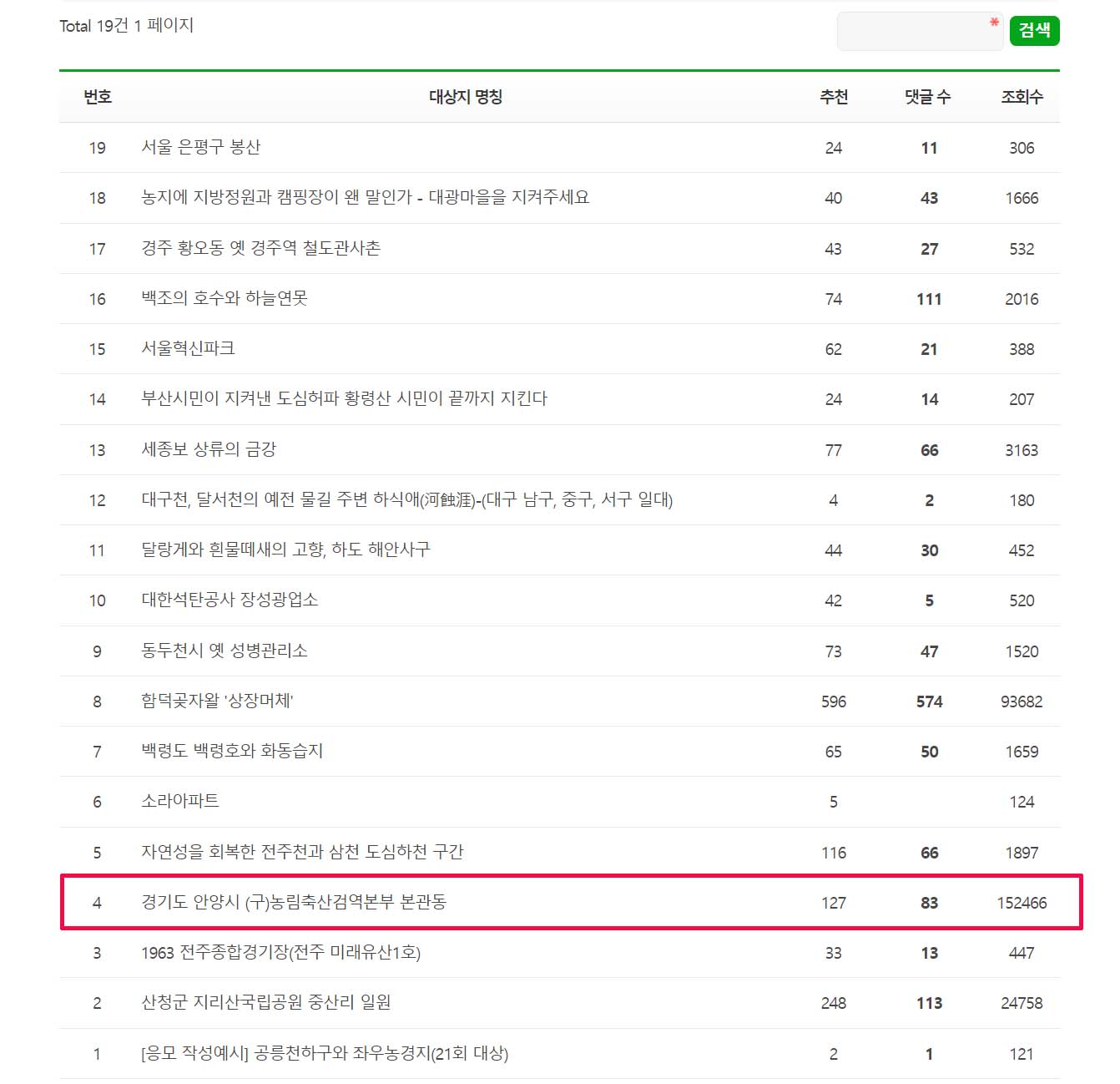 특히 응모작에 대해 네티즌이 평가하는 게시판을 보면 안양 (구)농림축산검역본부 본관동에 대해 무려 15만2466명이 조회를 하면서 이곳을 지켜야할 사유를 살펴보고 176명이 추천하고 83명이 댓글을 다는 등 네티즌들의 관심과 보전을 지지하는 의견이 엄청나다 싶을 정도로 뜨거웠다. 응모작살펴보기(https://nationaltrust.or.kr/bbs/board.php?bo_table=B13_req)