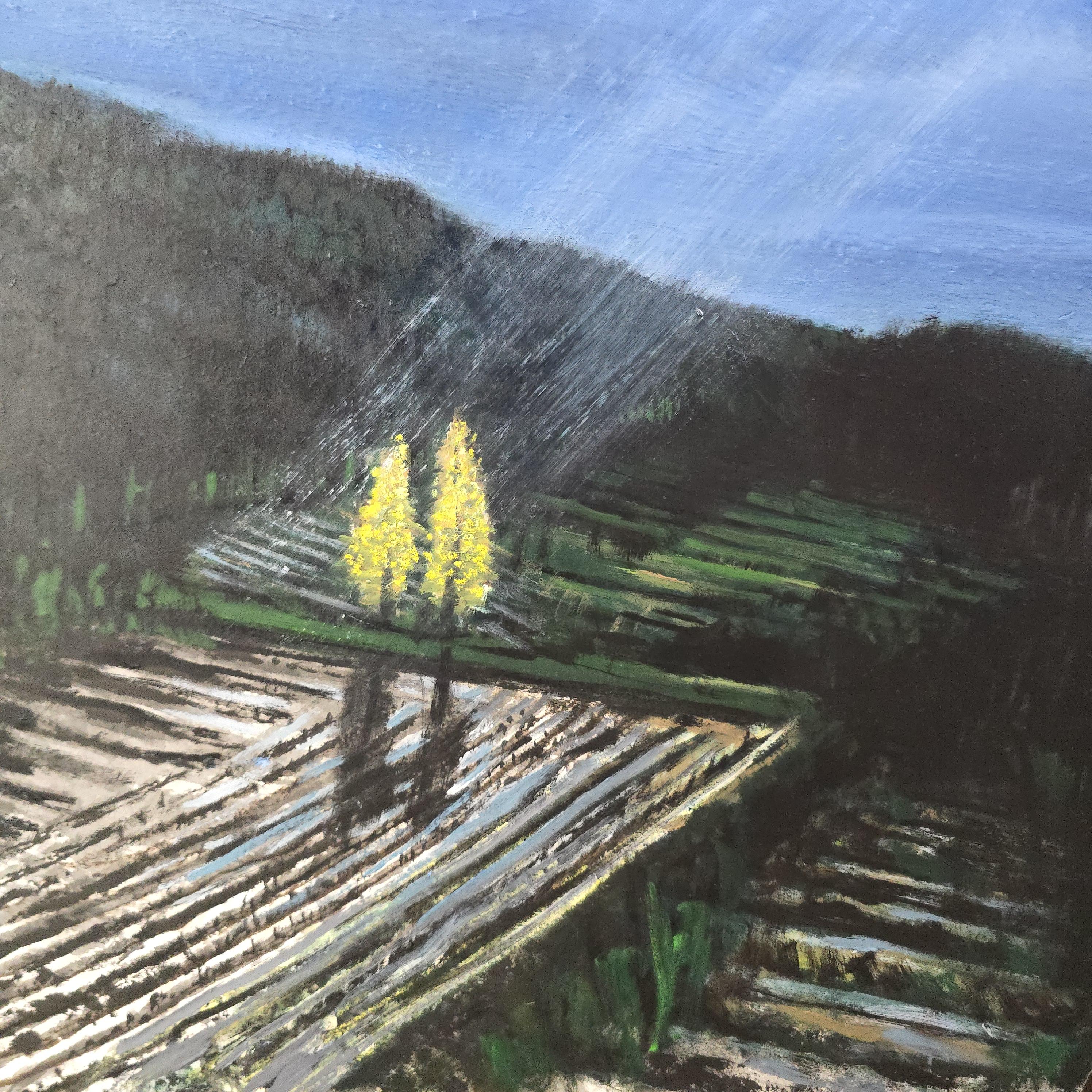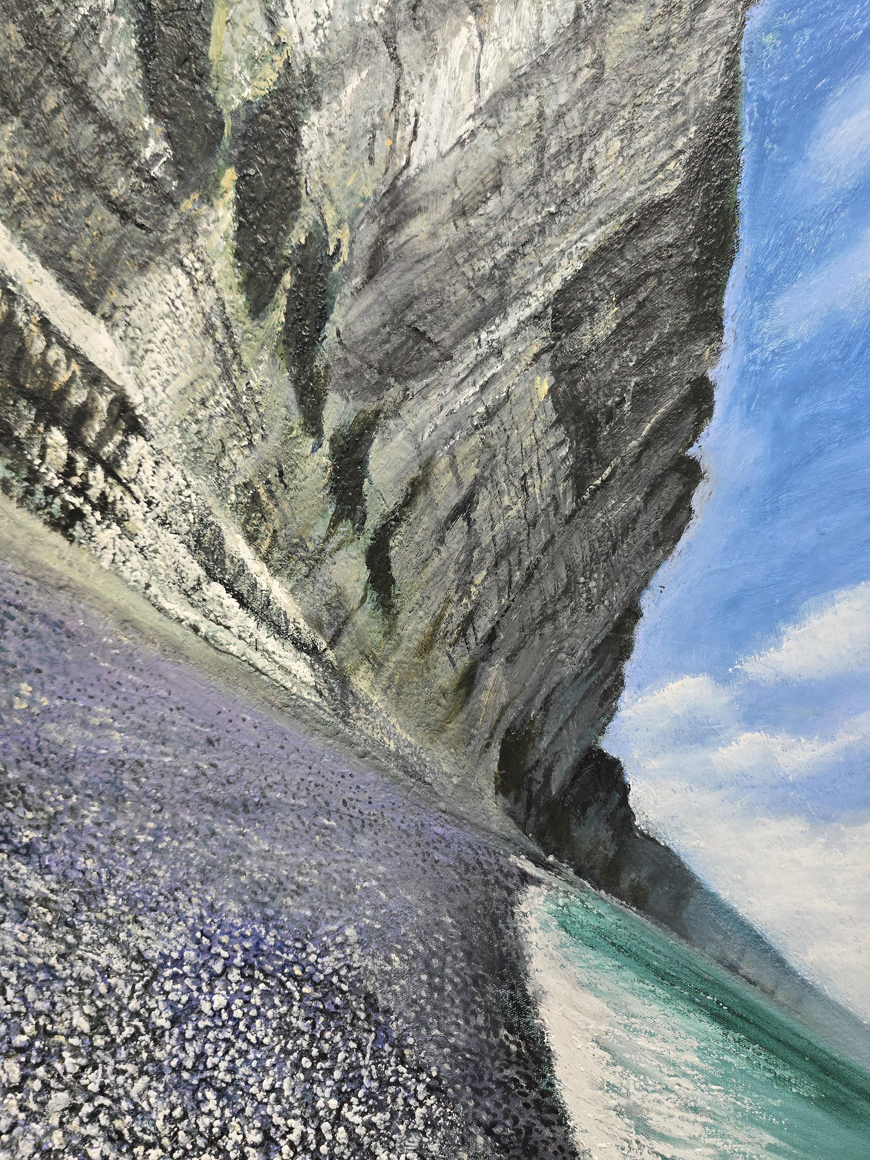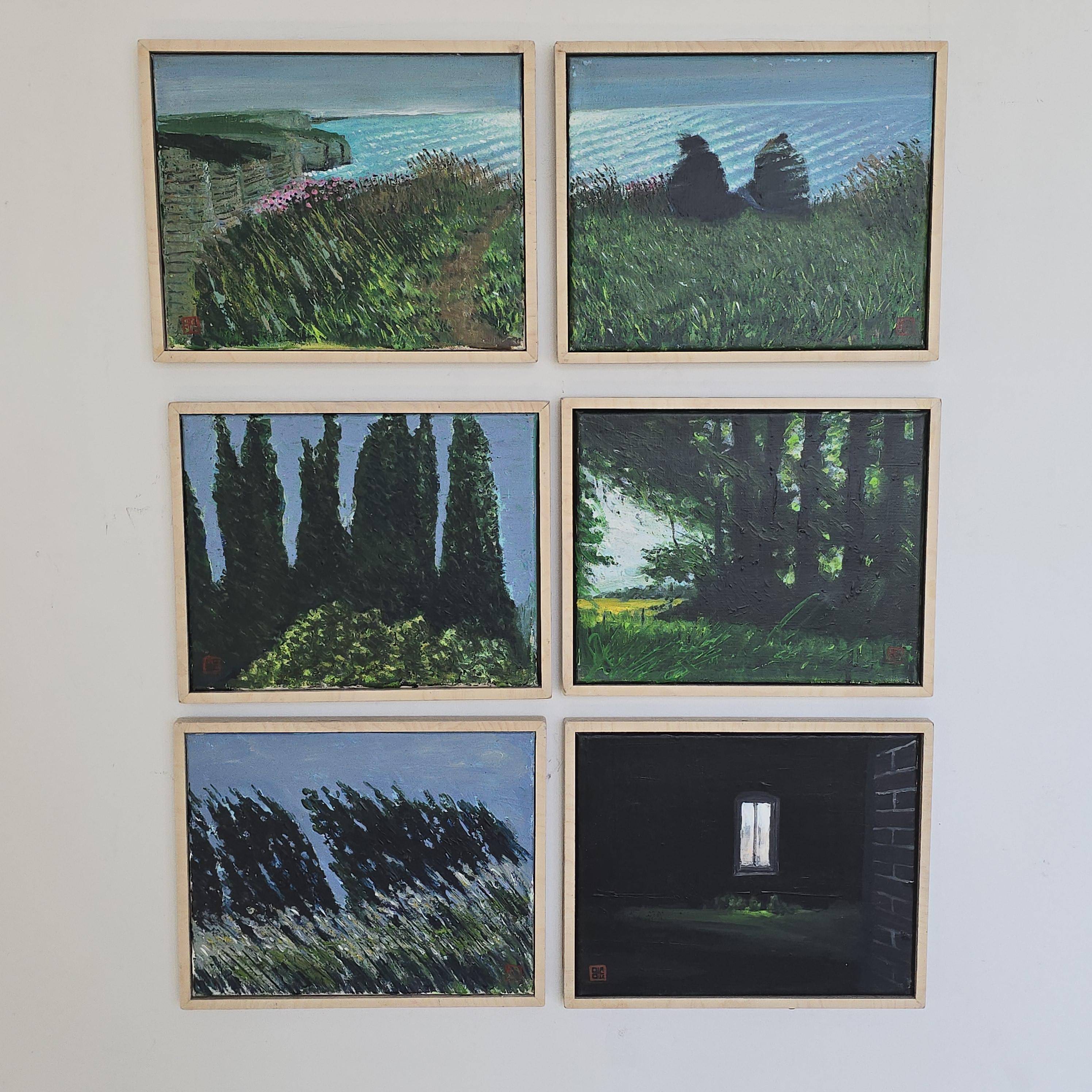 어떤 감각은 근육에서 비롯된다. 박찬응은 표류하는 동안 끝없이 그림 그리기를 연습했다. 외딴섬 파도치는 소리로 가득했던 빈집이나 모네(Oscar-Claude Monet)가 반복해서 그렸다던 미루나무 길이나 영국대륙이 떨어져 나간 지층이 파도에 부서지는 페깡의 절벽 앞에서도 그의 시선은 근육 깊숙이 잊힌 그리기의 감각을 불러내기 위해 분주했다. 그래서 이 전시는 그가 머물렀던 공간과 그의 내면에 감추어진 시선의 동굴과 같다. 어떤 그림은 그가 이동했던 긴 여정을 담고 있는 하나의 긴 풍경이 되고 또 다른 그림은 서로 마주하고 펼쳐진 한 폭의 그림책이 된다. 작업실 안에서 밖으로 내다보이는 차분한 풍경이 있는 공간을 지나면, 새벽을 그린 그림 건너편으로 절벽이 서 있다.