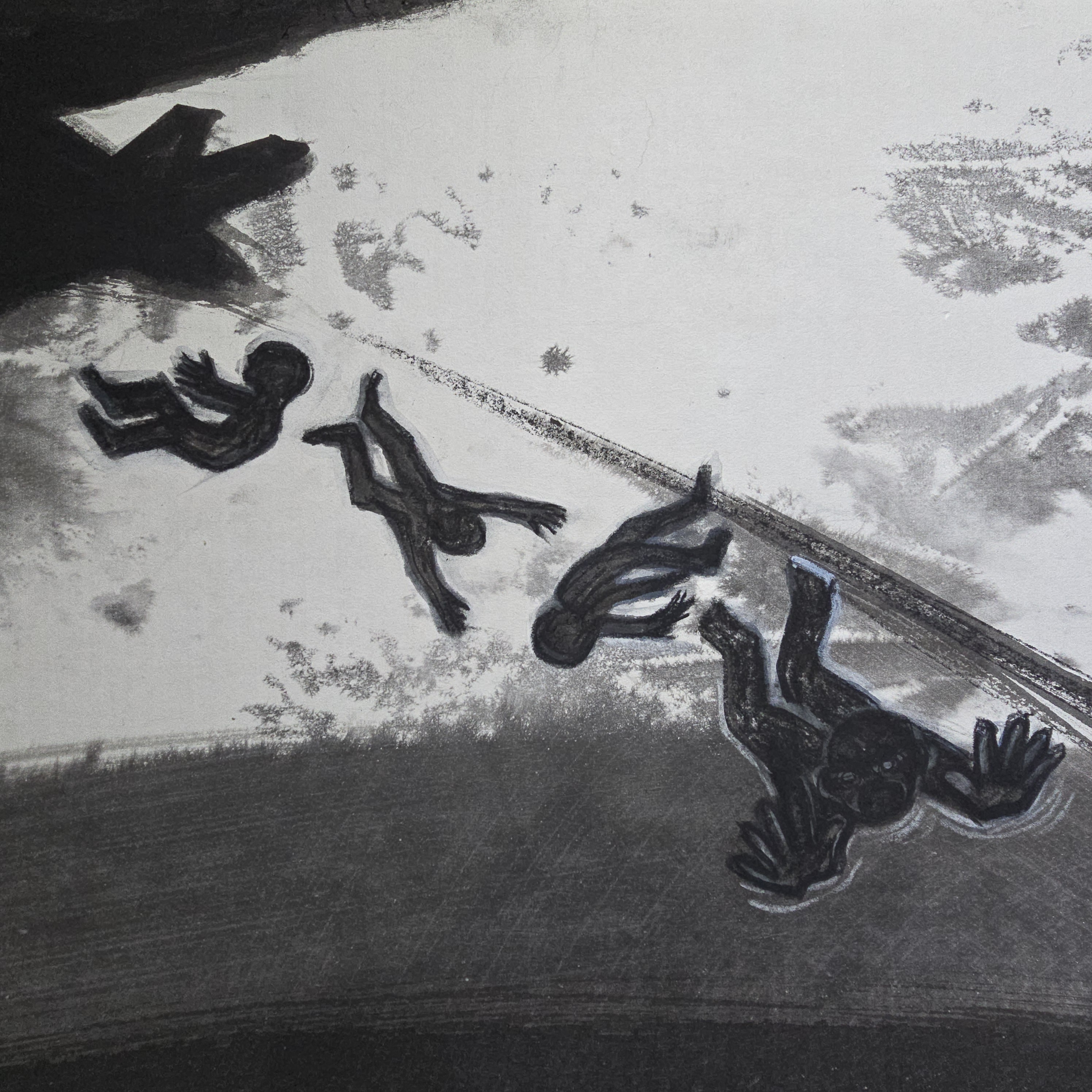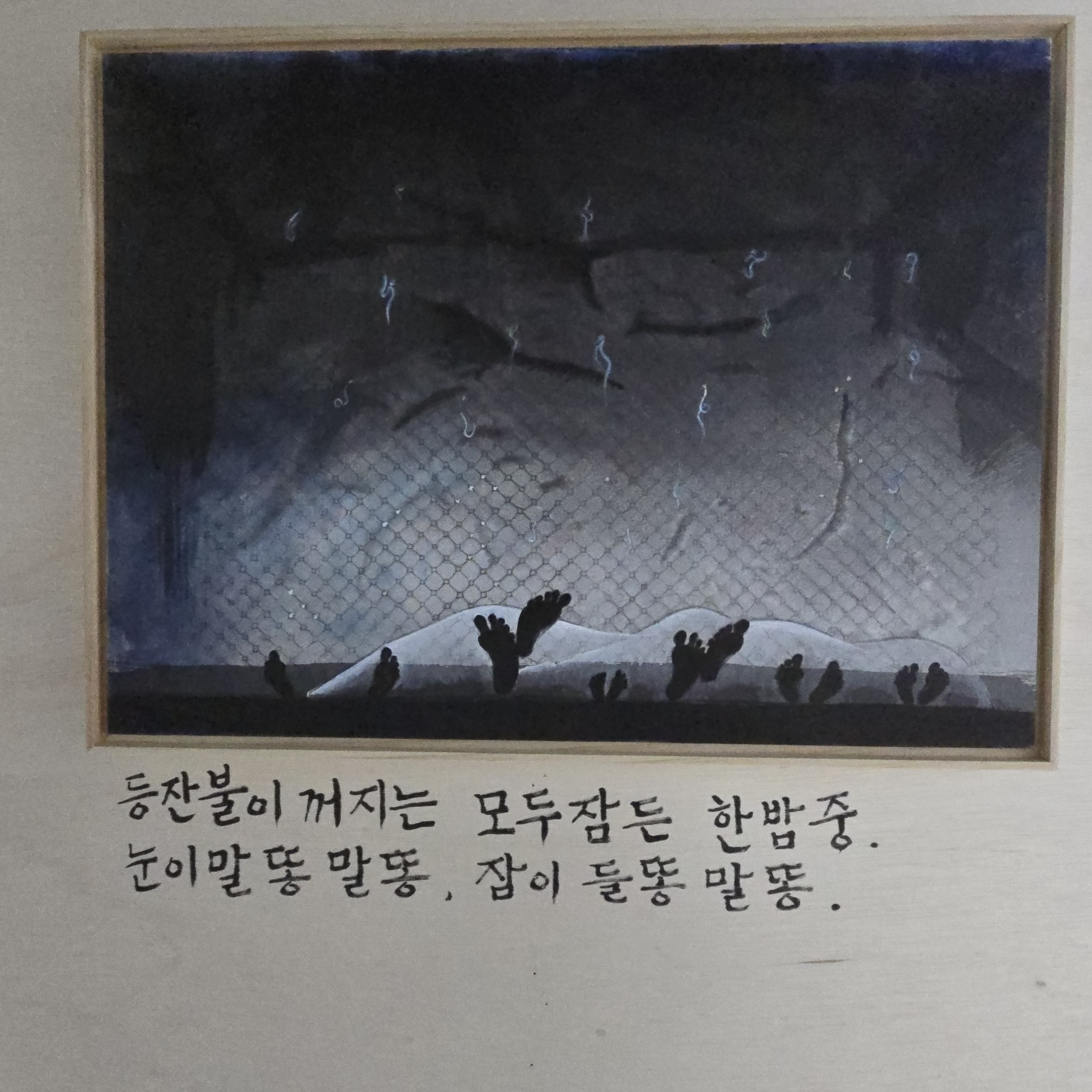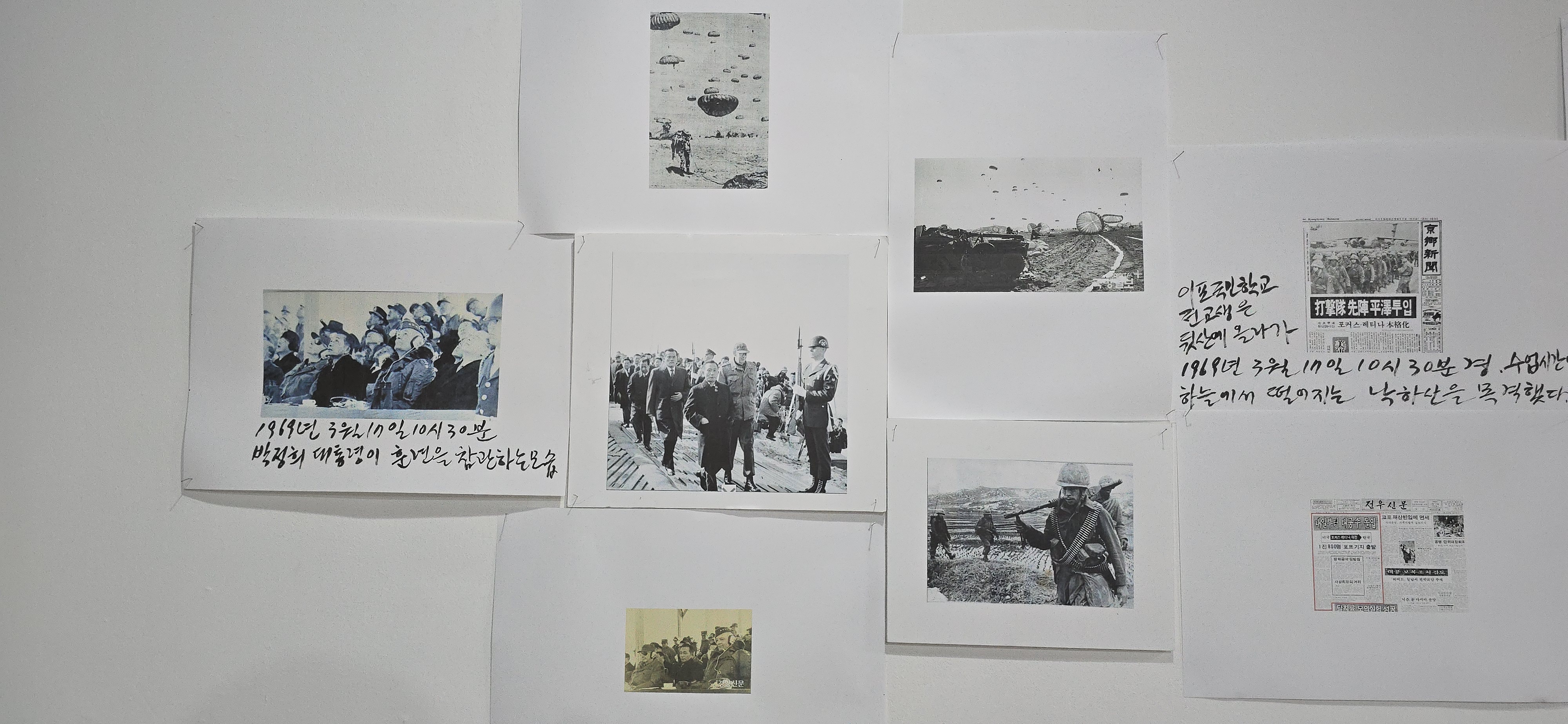 마지막으로 표류의 기억은 어린 시절 반복해서 꾸었던 악몽에 관한 것인데, 최근 작가는 이 악몽을 주제로 『소년, 날다!』(책마을 해리, 2024)라는 그림책을 출판하기도 했다. 이 세션에는 그림책에 사용되었던 원화와 더미북 그리고 꿈의 직접적인 배경이 된 1968-1969년 사이의 일어난 간첩사건들과 그로 인해 파생된 사회적 이슈들과 그가 목격한 한미연합군사훈련 ‘포커스 레티나(Focus Retina)’의 아카이브가 함께 전시되어 있다, 그림책에 그려진 그림은 작가의 ‘근원적인 공포’에 관한 것으로 표류하던 중에 그려낸 것이다.