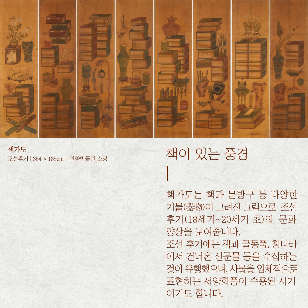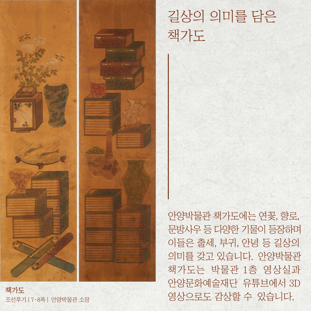 이번 카드뉴스를 통해 '책가도'에 관해 알아보고 안양박물관에 방문하셔서 직접 유물을 관람해 보시기 바랍니다.