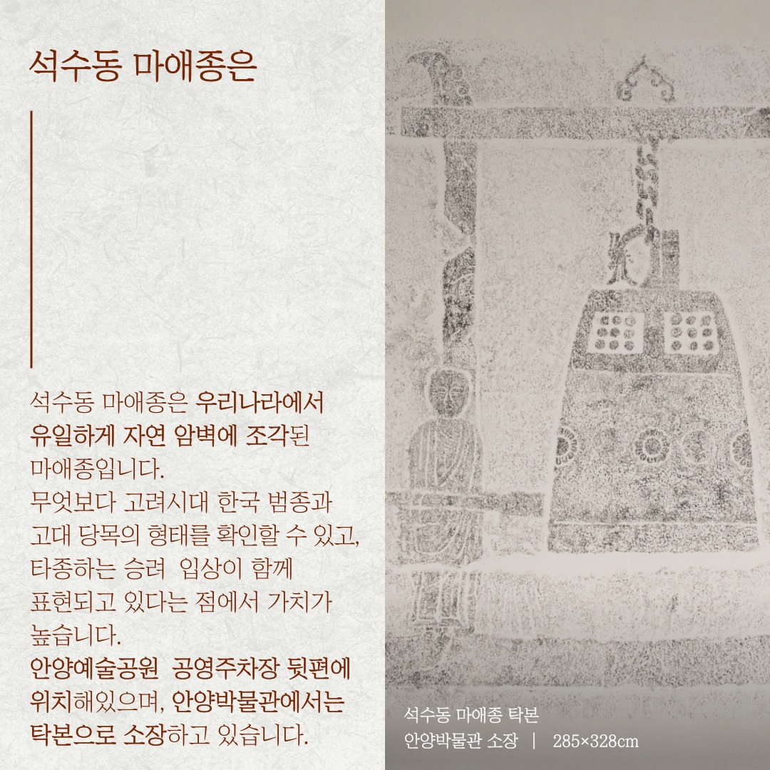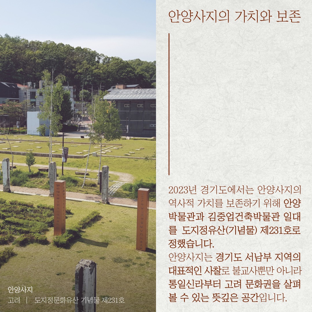 안양의 첫 시작을 문자로 확인 할 수 있는 유물이자, 고려시대부터 안양이 중요한 장소였음을 알려주는 중요한 자산입니다.