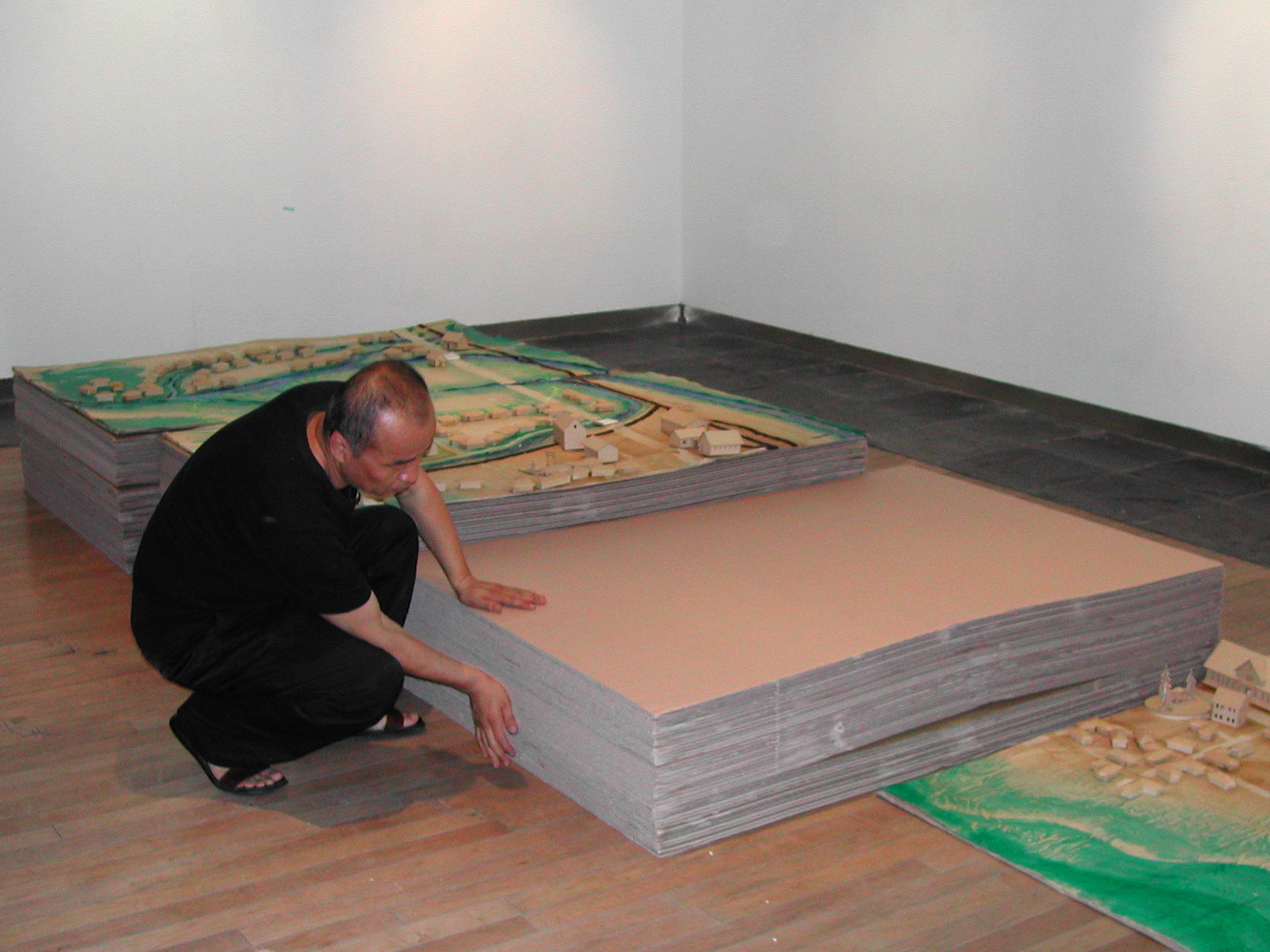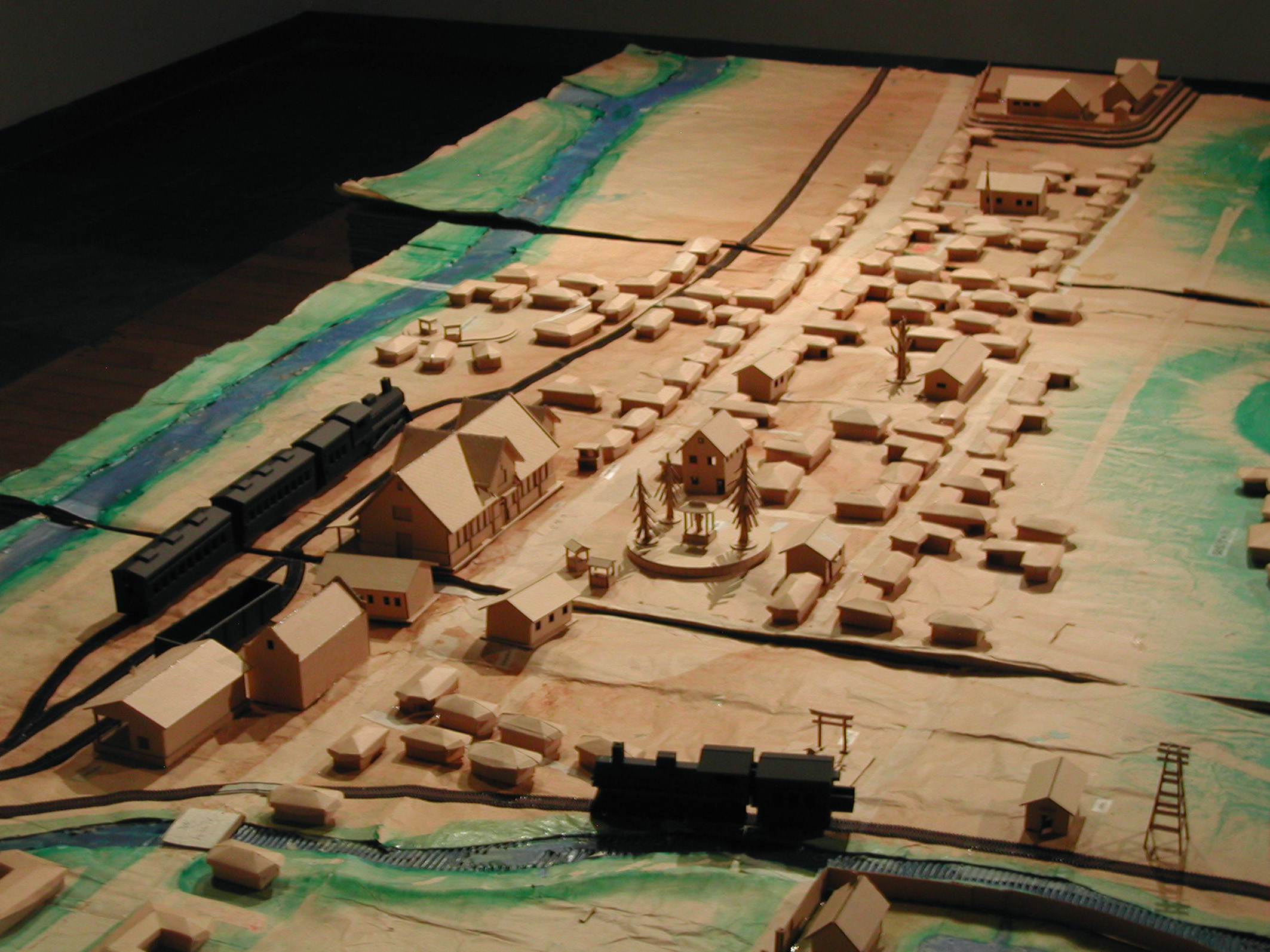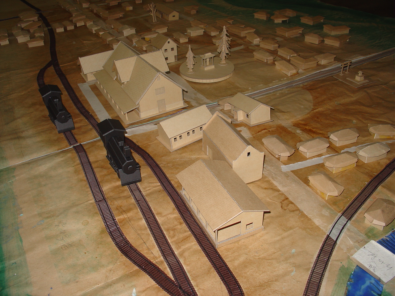 특히 전시회중 많은 이들로 부터 관심을 모았던것은 1930-40년대 안양시가지 모형으로 종이모형 아티스트 장형순 작가가 초배지로 도배한 오래된 벽지와 골판지로 만들었다.