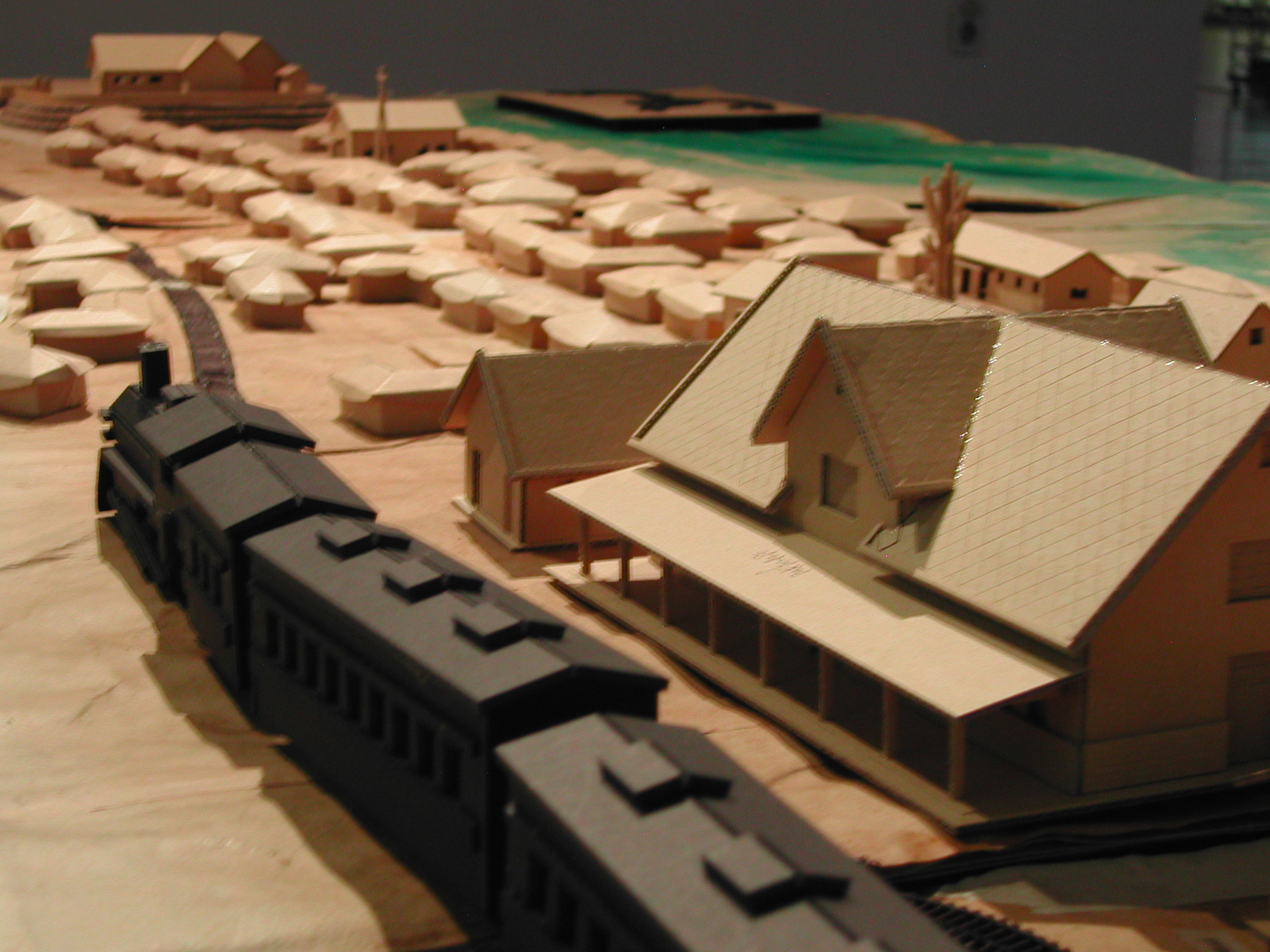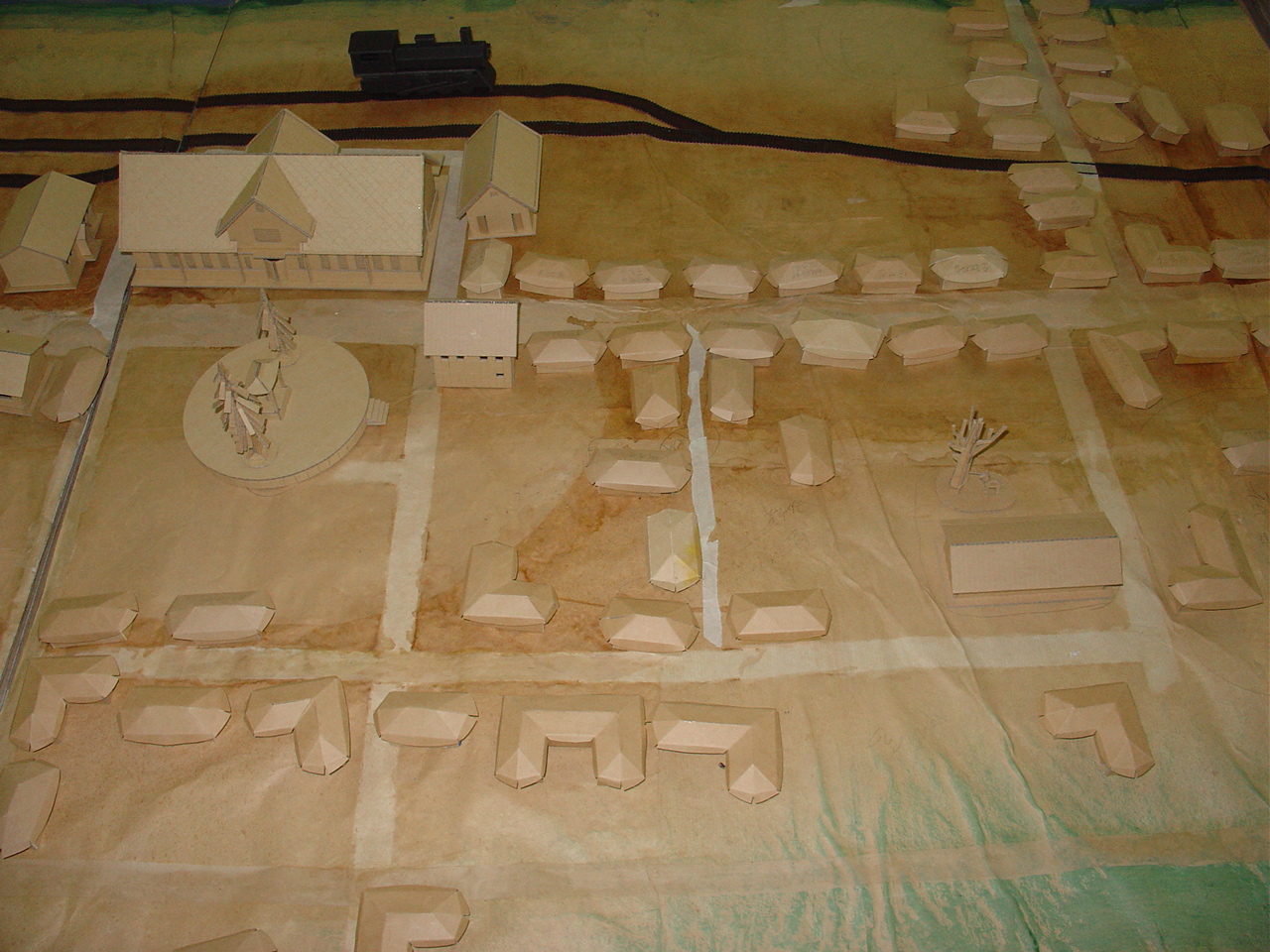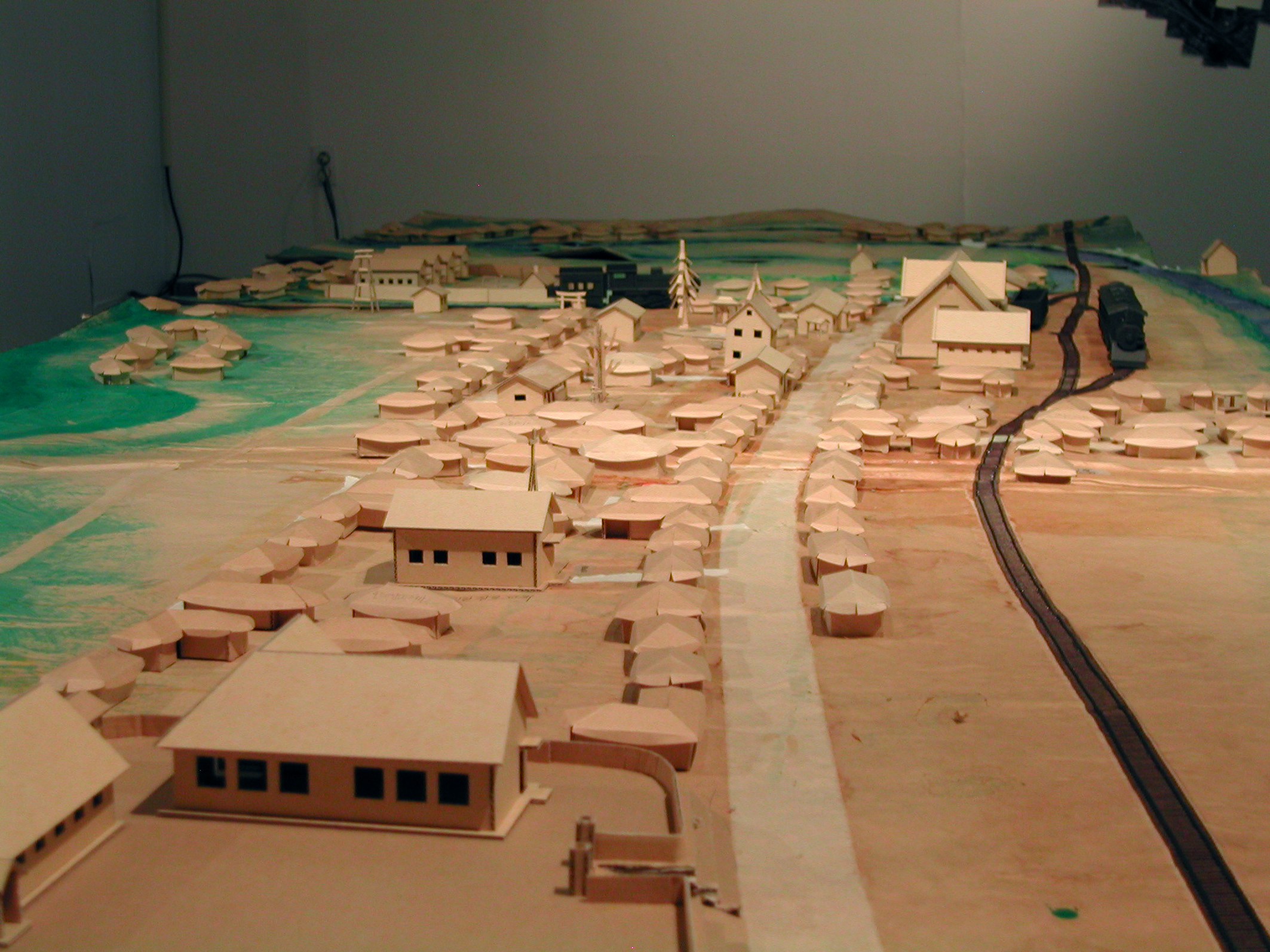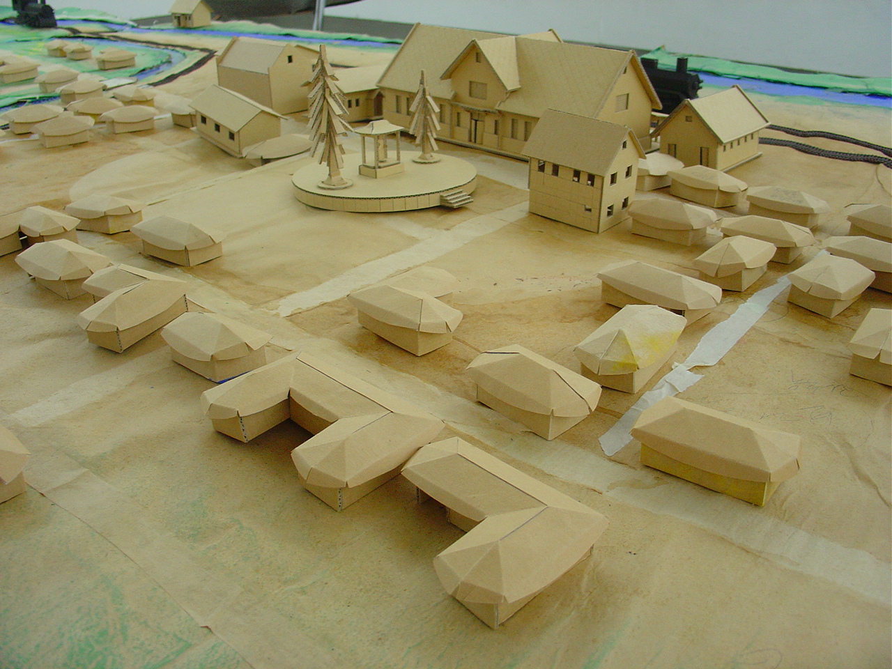 특히 전시회중 많은 이들로 부터 관심을 모았던것은 1930-40년대 안양시가지 모형으로 종이모형 아티스트 장형순 작가가 초배지로 도배한 오래된 벽지와 골판지로 만들었다.
