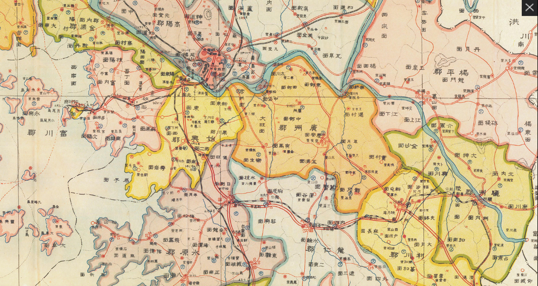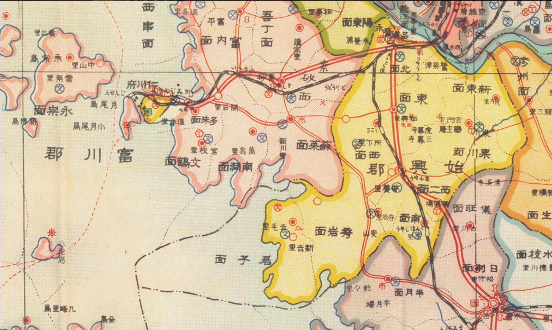 2025.01.23/ #지도 #아카이브 #기록 #역사 #안양권지도 #시흥군 #서이면/ 경기도관내도. 1930년대 추정