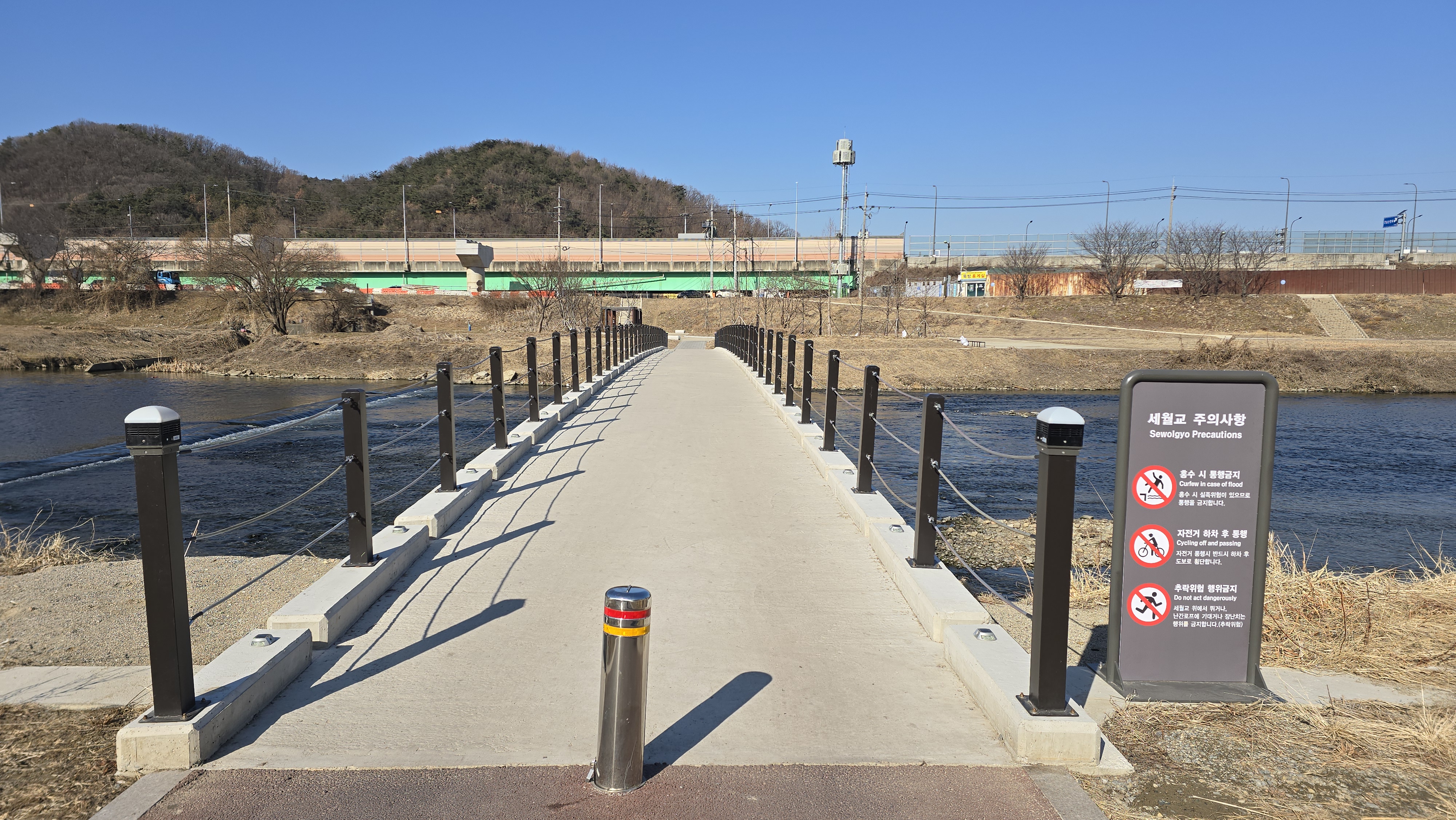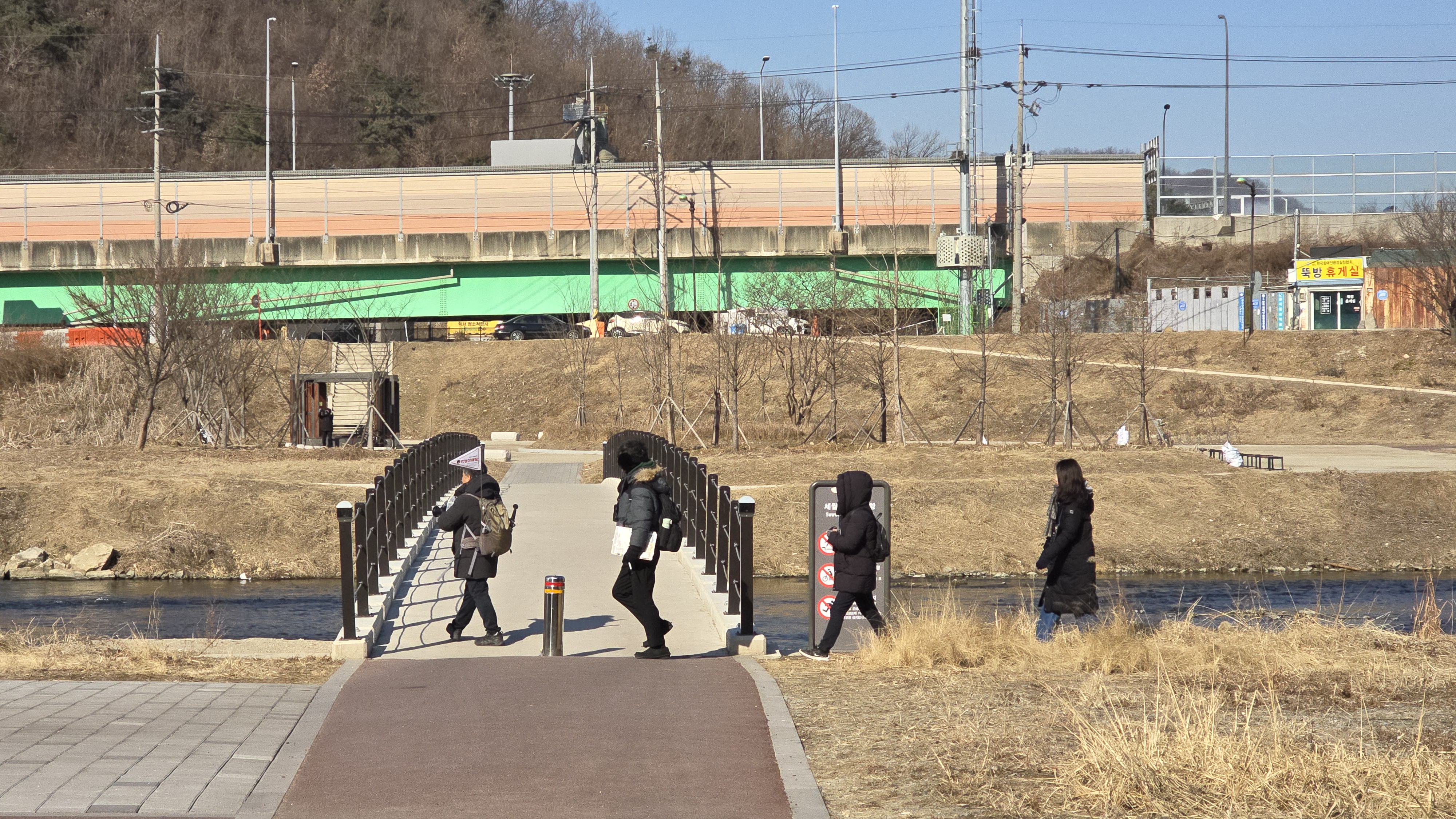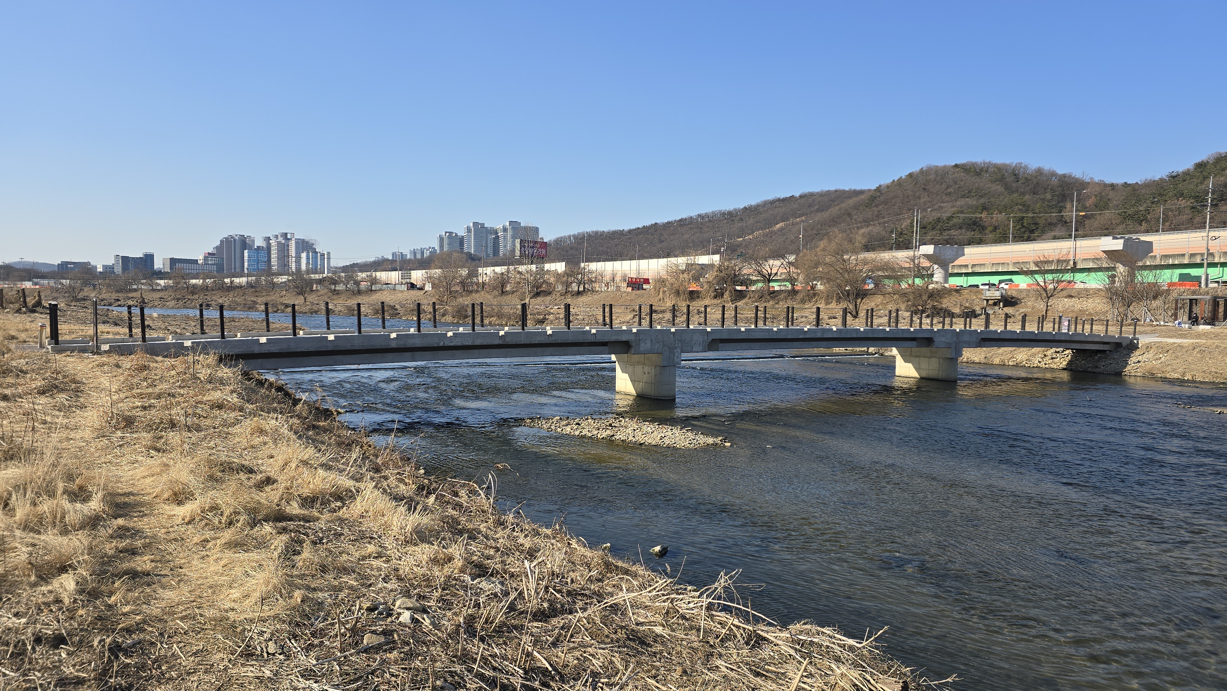 좀더 남쯕으로 내려가 차량이 다니는 새로운 다리를 가설하려는듯 교각이 설치되고 있다. 이 다리 옆으로는 나지막한 콘크리트 잡수교가 있다. 이 다리는 카이스트에 776억을 기부해 화제를 낳았던 여걸같은 광원산업 이수영 회장이 2021년 CHOSUN 가족 예능 '와이프 카드 쓰는 남자'에서 언급한 다리다.
