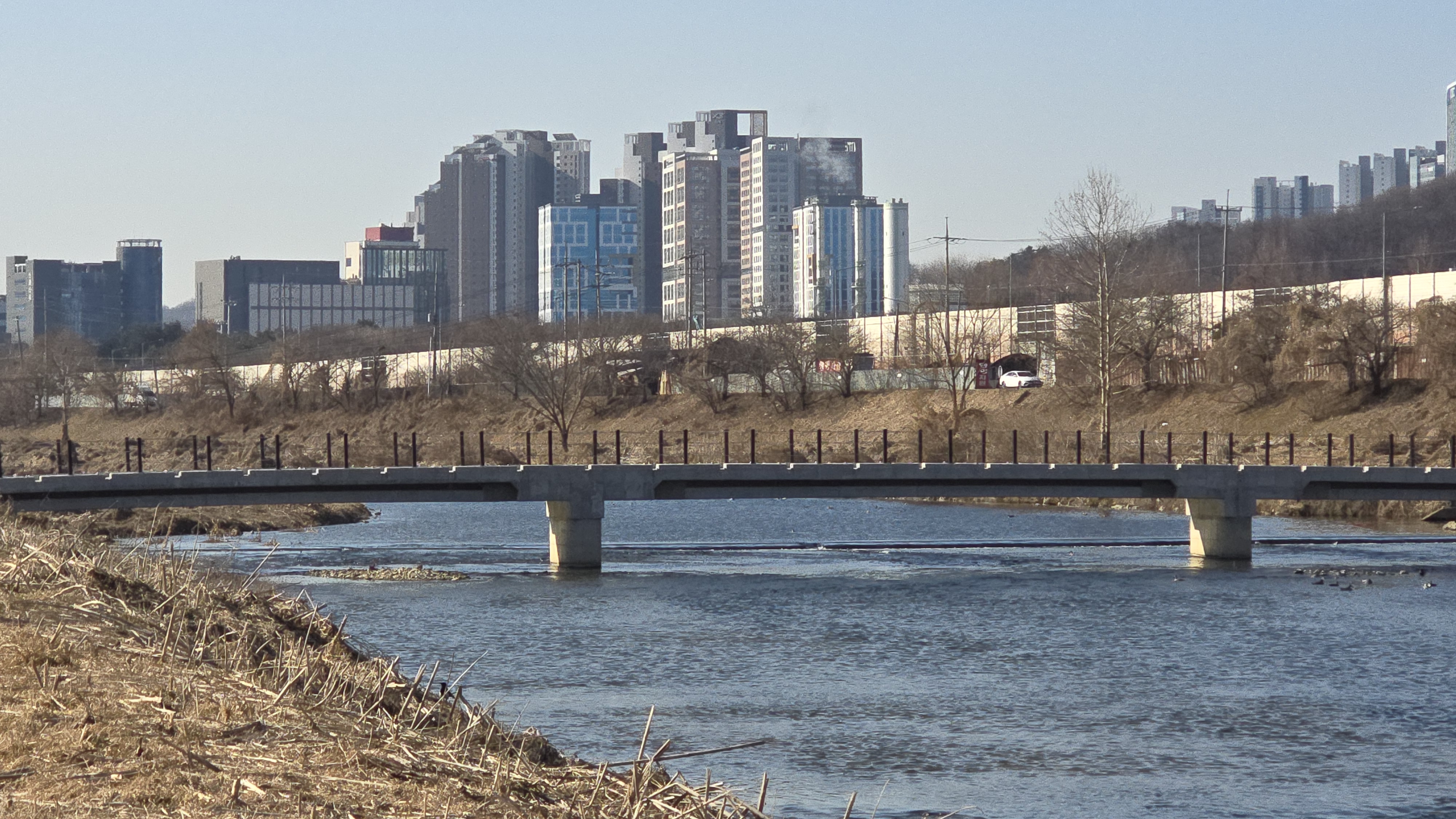 2025.02.19/ #도시기록 #안양천 #석수동 #연현마을/ 석수역을 출발해 안양천생태이야기관까지 걸으면서 보는 안양천 풍경. 오랫만에 갔더니 스톤앤워터 주최 안양천프로젝트 당시 작가 김영신이 얼음덩어리를 물에 띄우며 행사를 진행했던 석수LG아파트앞 예뻤던 무지개다리는 없어지고 그 자리에는 볼품없지만 콘크리트로 튼튼하게 만든 세월교가 들어섰다.