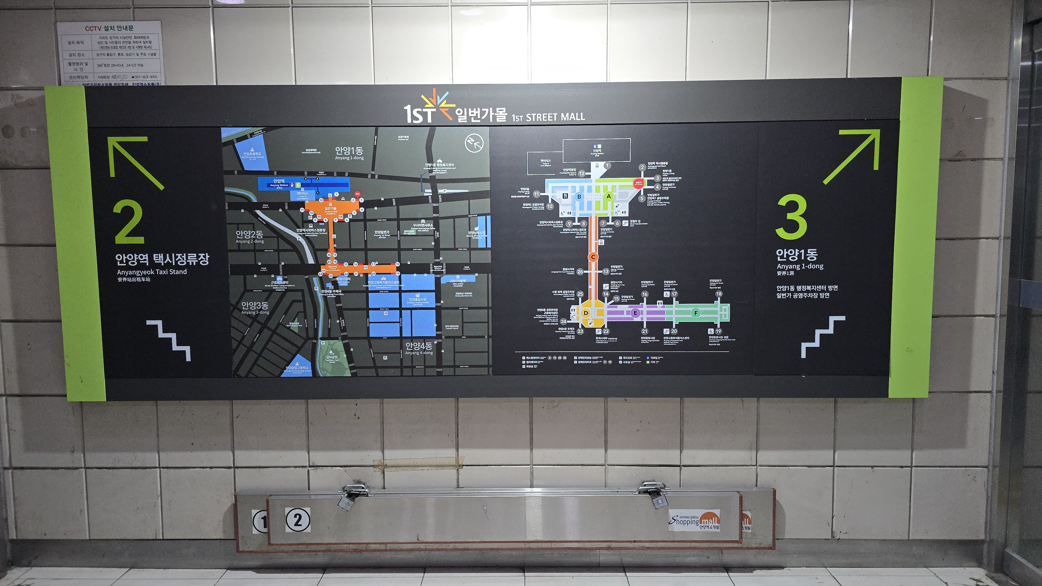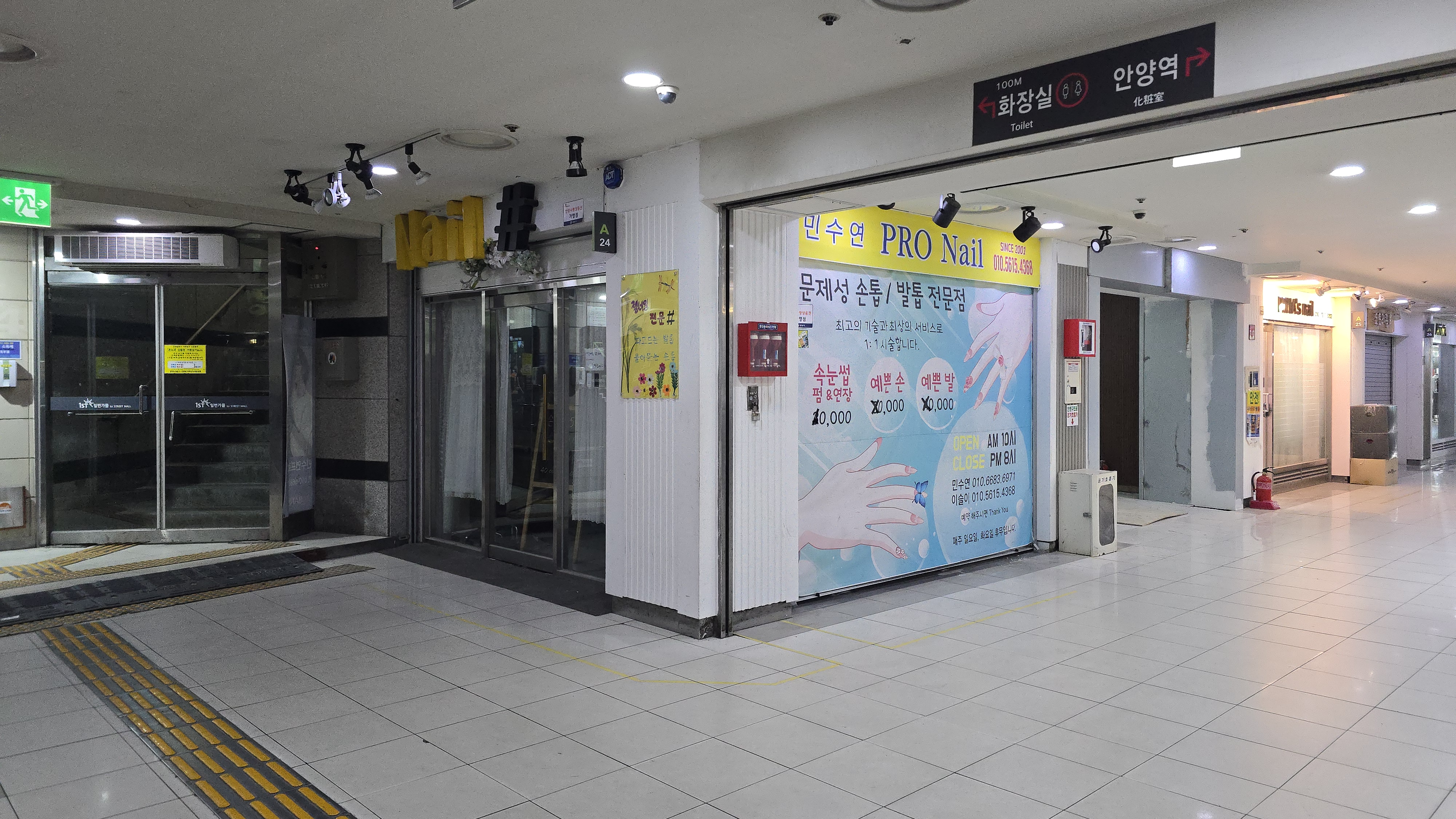 위치: 안양일번가몰(안양역지하상가) 중앙 통로에서 2번 출구 방향.