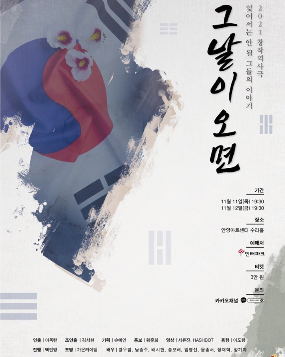 경기도 안양시에 위치한 극단미스터리(MR.Lee Company/, 대표 이목련)는 이번 3.1운동 101주년 기념 역사문화체험프로그램 ‘그날이 오면’(이하 ‘그날이 오면’)을 기획으로 극단의 정체성을 확립