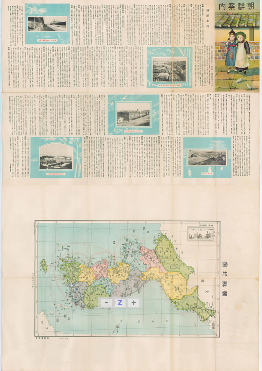 이 지도는 강제병합시기인 1910년에 발행된 지도로 지도상 만주국과 러시아가 분도로 들어가 있다. 울릉도와 독도는 도식이 되지 않고 있으며 조선지도와 주요도시로 경성 부산 원산 인천 평양의 분도가 포함되어 있다.
